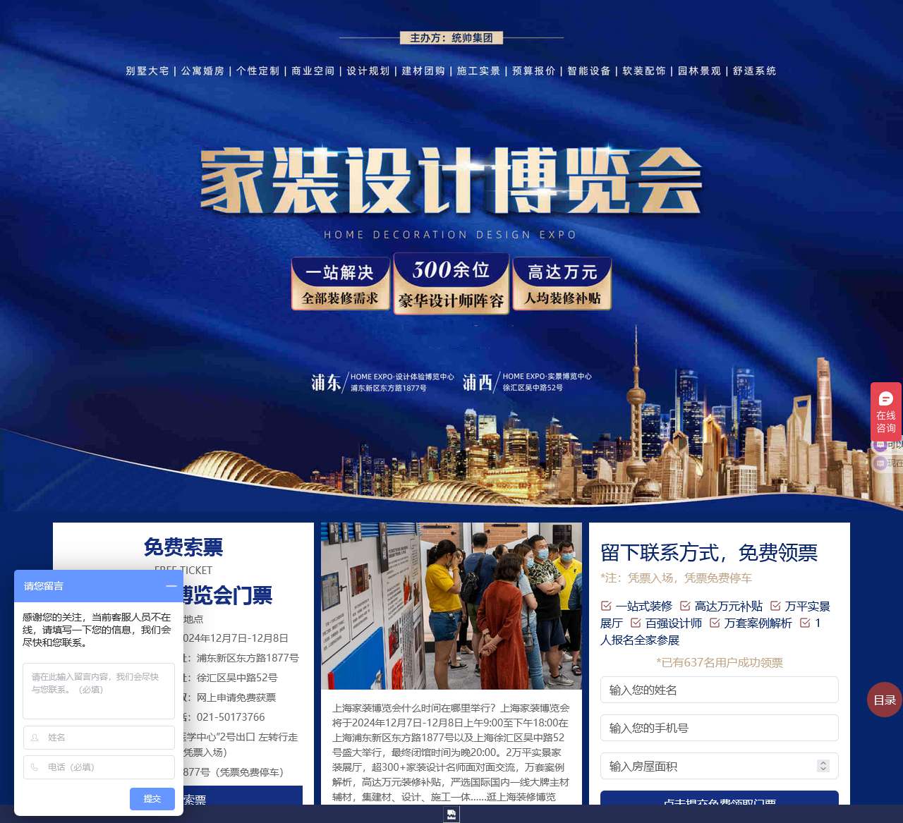 | 上海家装博览会2024年展览时间及地点 | 展会将于12月7-8日举行,地点为东方路1877号,涵盖300+设计师的家装服务。 |