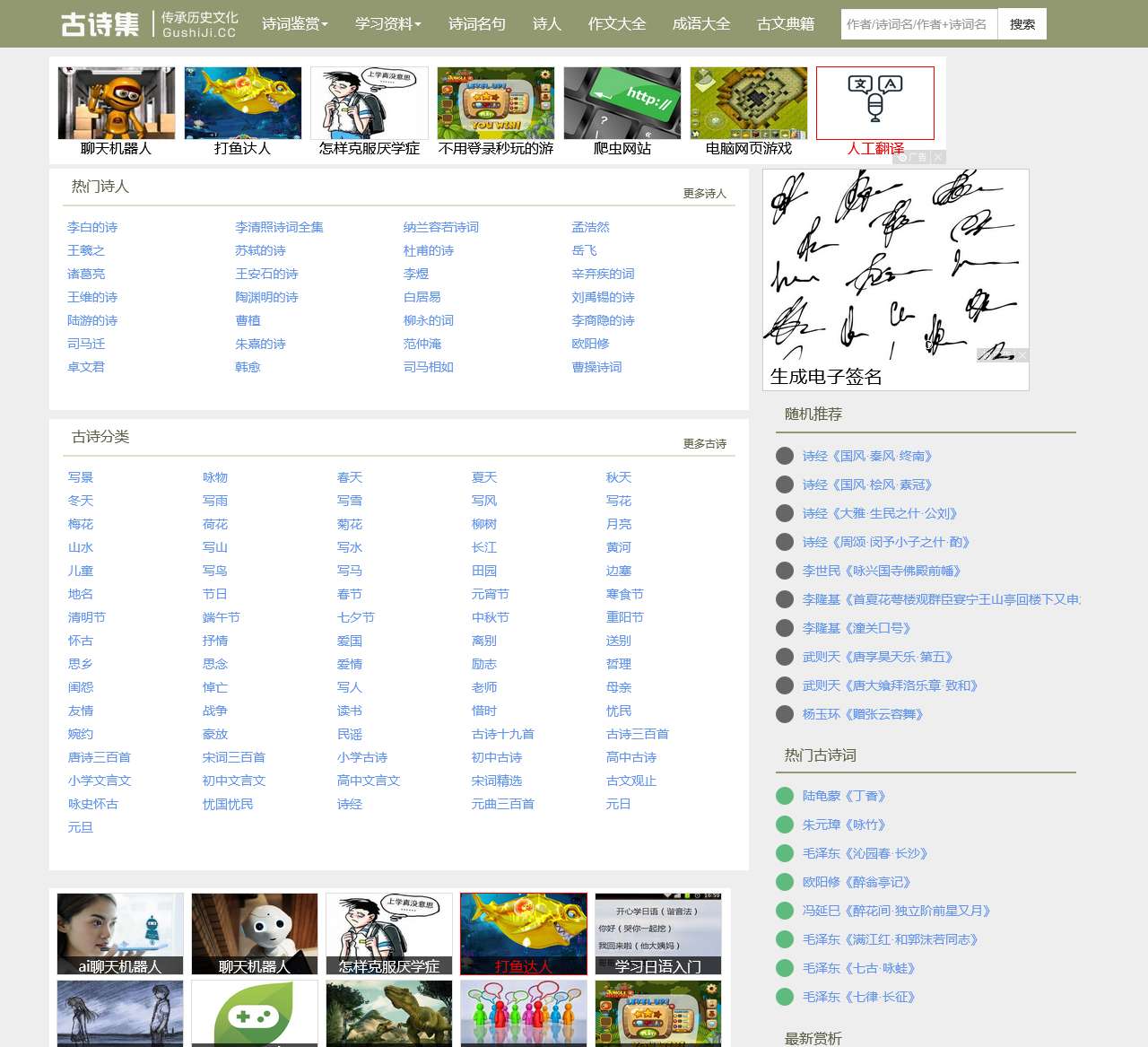 | 诗歌分类 | 婉约、豪放、民谣、古诗十九首、古诗三百首、唐诗三百首、宋词三百首、小学古诗、初中古诗、高中古诗、小学文言文、初中文言文、高中文言文 |