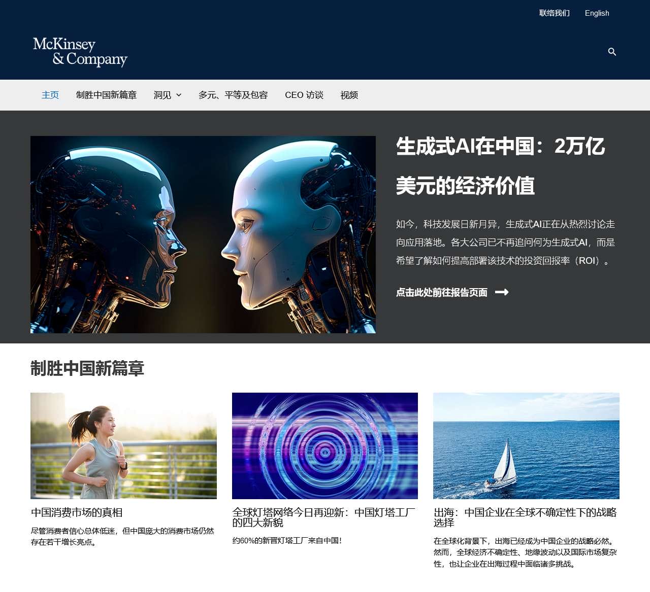 | 其他内容 | – 中国消费市场的真相 – 全球灯塔网络今日再迎新:中国灯塔工厂的四大新貌 – 出海:中国企业在全球不确定性下的战略选择 – 中国消费: 不确定环境中的增长势头 – 旅游业变革,体验游崛起 – 麦肯锡全球保险业报告:展望亚洲财险业的未来 – 罗克韦尔自动化中国区总裁石安:“坚持做人家做不了的事” – 日本企业全球化布局的成功之道与启示——麦肯锡资深董事合伙人曲向军对话程晓明 – 蒙牛集团总裁高飞专访:“100人100亿产值”的新质探索 – “由内而外”的领导力之旅:个人成长如何创造成功之路 – 台湾企业全球化布局的成功之道与启示—— 麦肯锡资深董事合伙人曲向军对话周荣生 – 飞跃传统:郑煤机董事长焦承尧谈传统企业并购混改的蜕变之旅 |