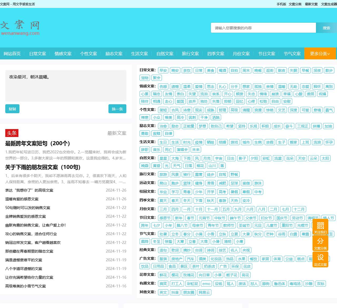 | 文案分类 | 最新文案 | 文案生成器 |