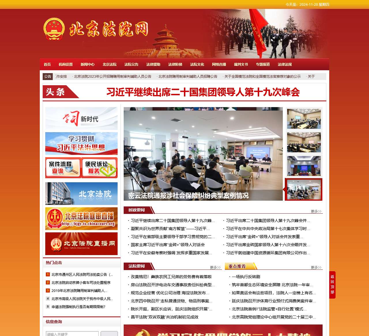 | 新闻栏目 | 北京法院、法院公告、法律援助、法律阶梯、法院文化、网络直播、裁判文书、专题报道、法律法规 |