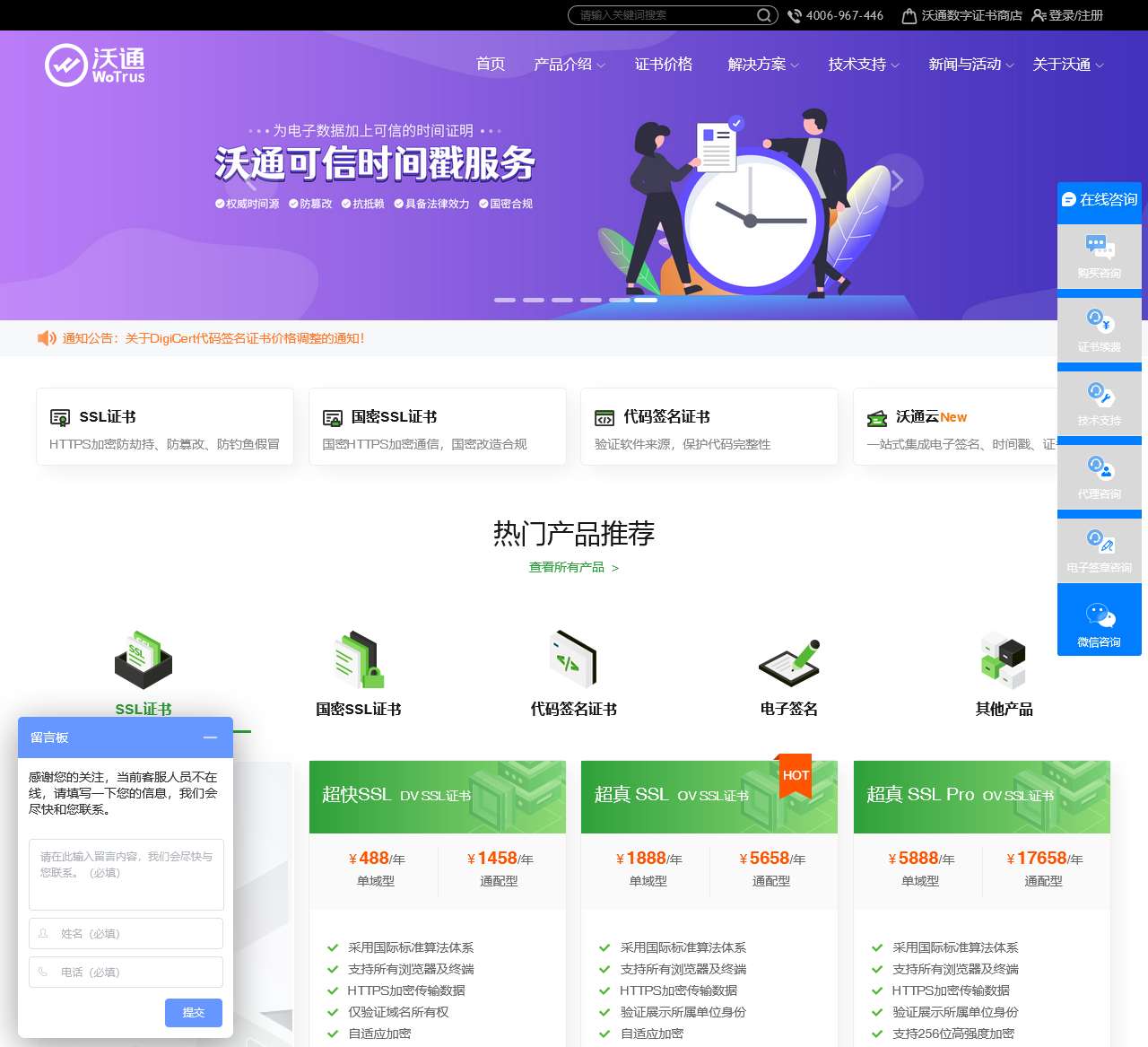 沃通CA是一家专业的数字证书商店,提供多种类型的证书服务,协助保护网站安全并提升搜索引擎优化效果。以下是沃通CA官网首页的内容的整理:
