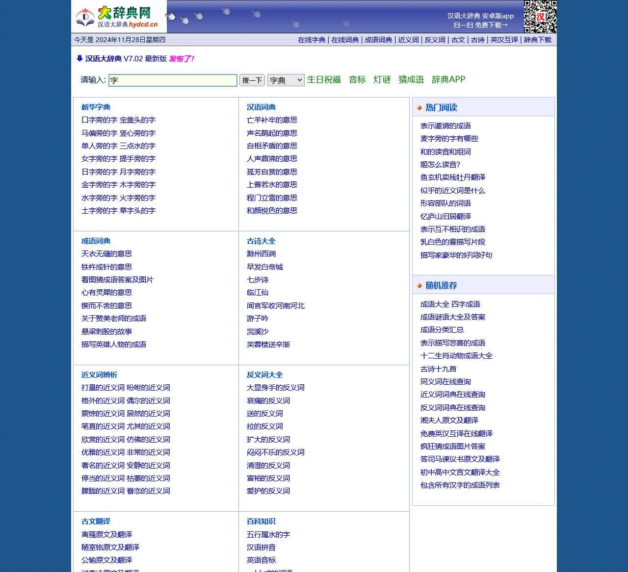 | 字典相关 | 在线字典,在线词典,成语词典,近义词,反义词,英汉互译,汉语大辞典 V7.02 最新版,辞典下载 |