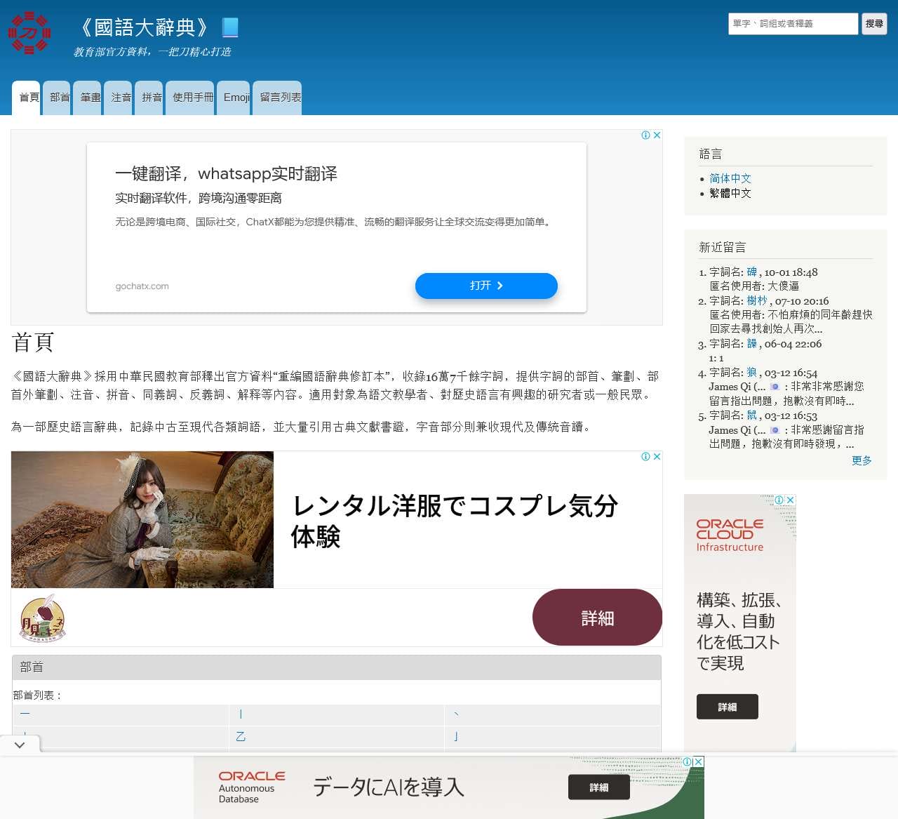 | 其他链接 | 《國語大辭典》 《國語辭典》 《國語字典》 《成語典》 《筆順字典》 多音字詞 类似詞列表(近義詞) 相反詞列表(反義詞) 單字 詞組 多音字列表 異體字列表 |