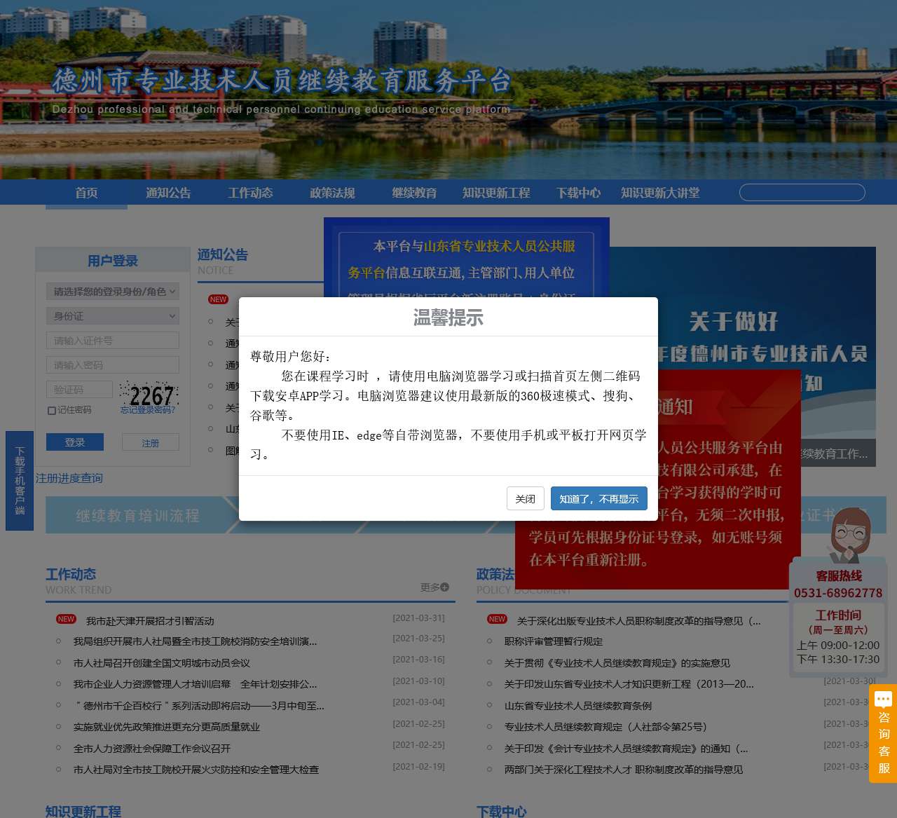 关于德州市专业技术人员继续教育服务平台特别声明