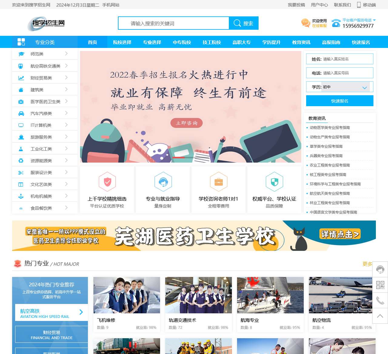 搜学招生网是一个为莘莘学子提供职业教育免费咨询、对比的平台,目前已发布安徽、江西、山东、江苏区域相关职教资讯,涵盖中专、大专、本科等全日制院校,成人高考、自考、网络教育、开放教育等成人学历提升。欢迎广大网友在线投稿。