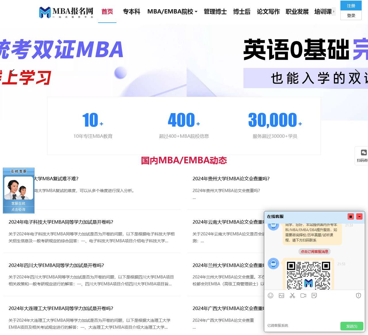 MBA报名网提供工商管理硕士MBA/EMBA招生简章,报考条件,学费,分数线,学费,录取信息等内容,包含统考MBA,中外合作MBA,香港澳门MBA,国外MBA。