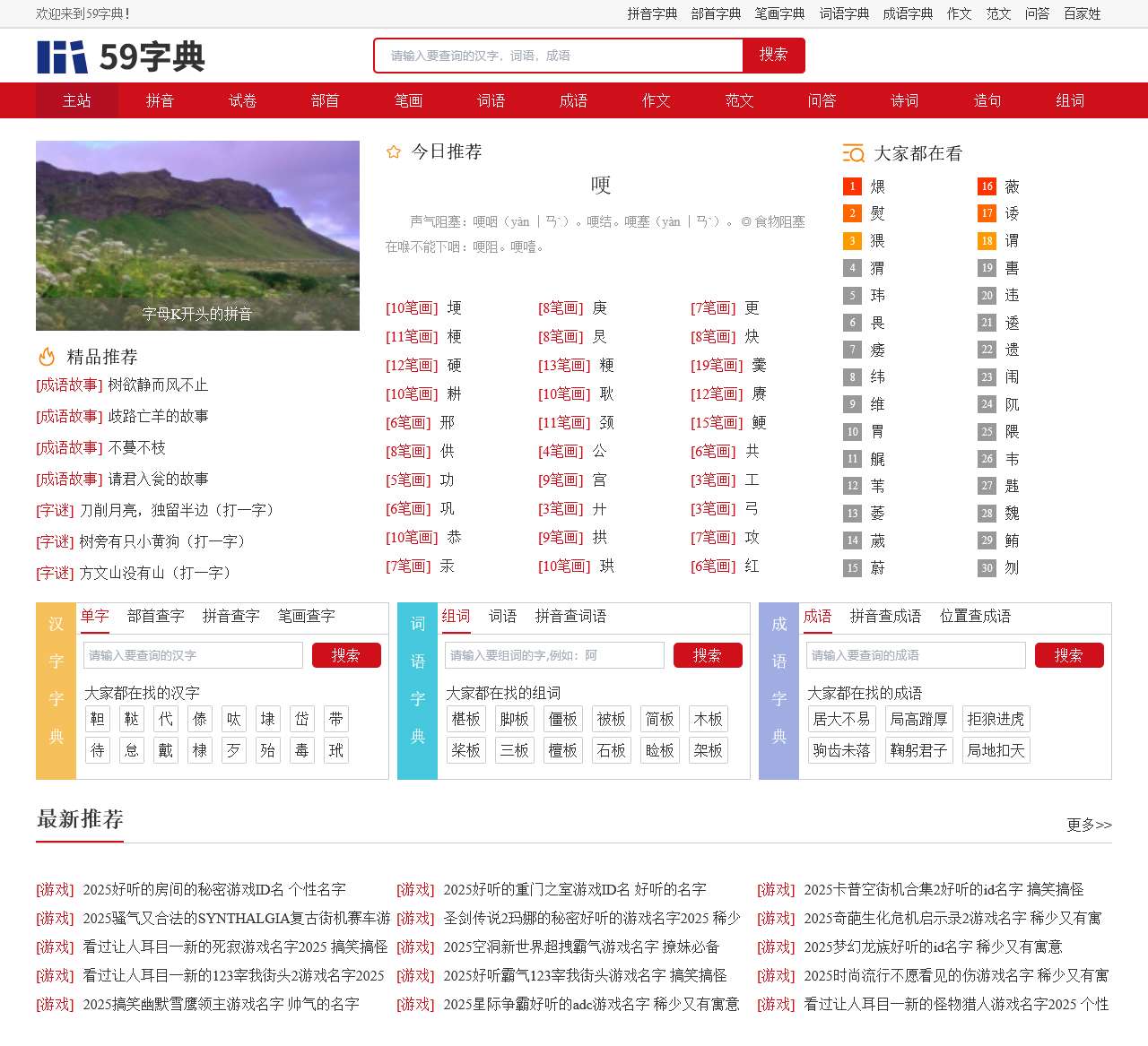 59字典为您整理汇总了新华字典,字典在线查字,词典,字典查字,汉字大全,在线字典,拼音字典,部首字典,笔画字典等各种字典的相关知识,来帮助您更好的学习.