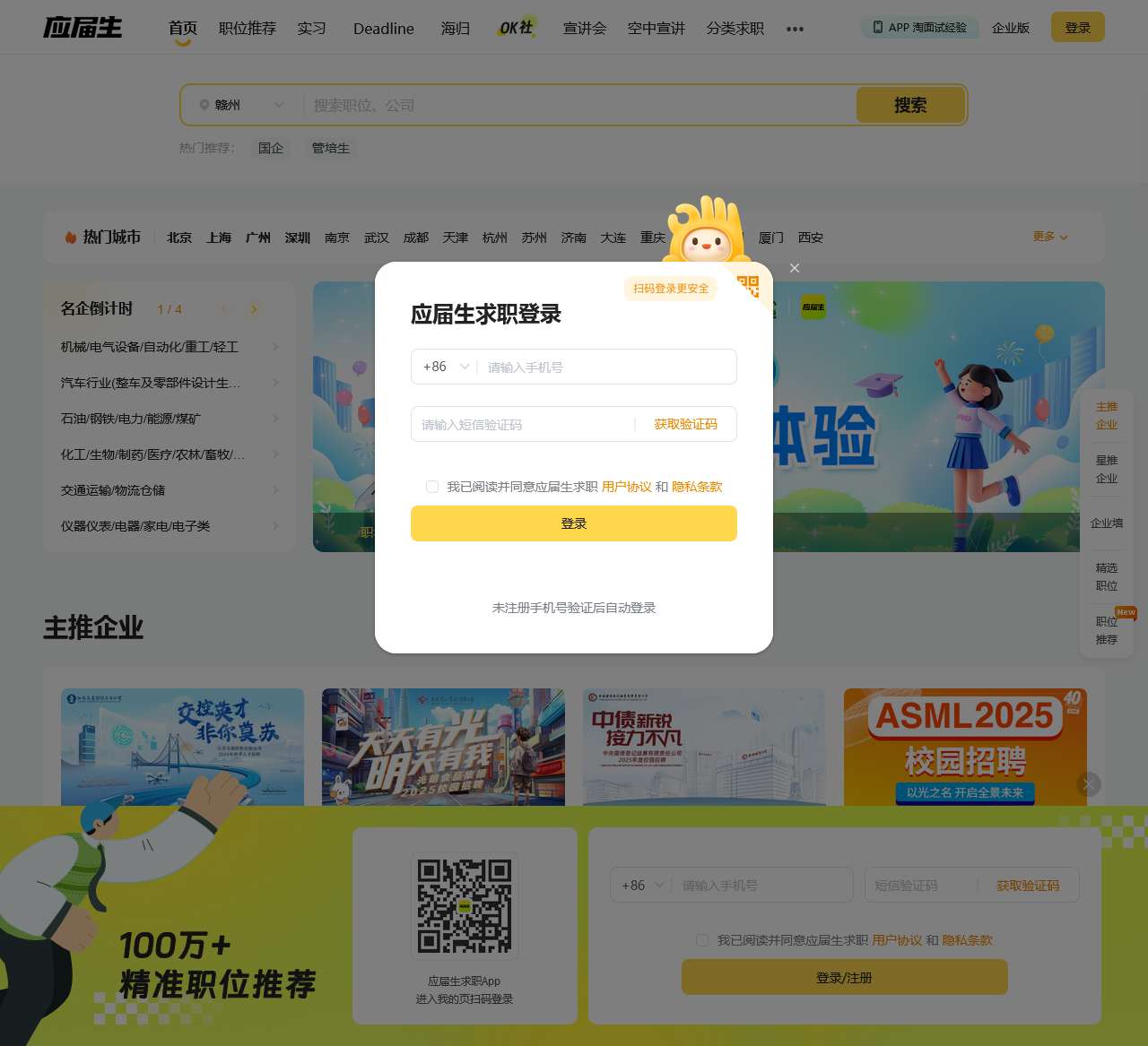 应届生求职网是中国领先的大学生求职网站,为应届毕业生提供大量校园招聘信息、兼职实习招聘信息以及校园宣讲会和校园招聘会信息,地区覆盖上海、北京、广州、深圳、武汉、南京、天津、成都等热门城市。