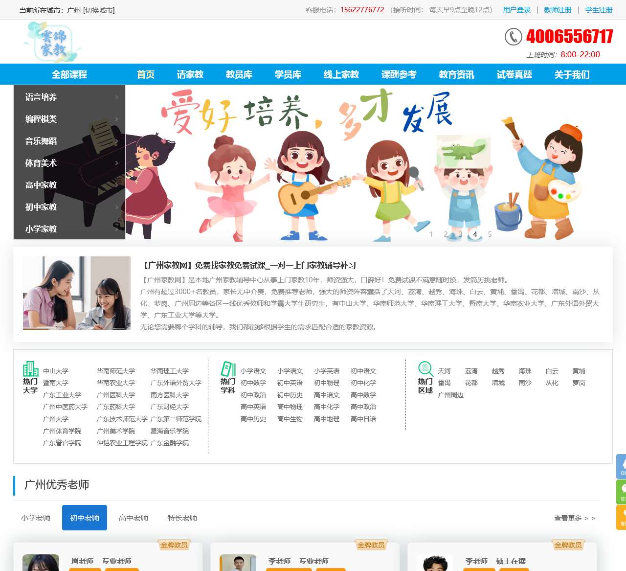 广州家教辅导中心专注家教10年,师资强大,口碑好!天河荔湾越秀海珠等各区一线优秀教师和中山大学、华南师范大学、华南理工大学等学霸大学生研究生.免费推荐老师,不满意随时换。