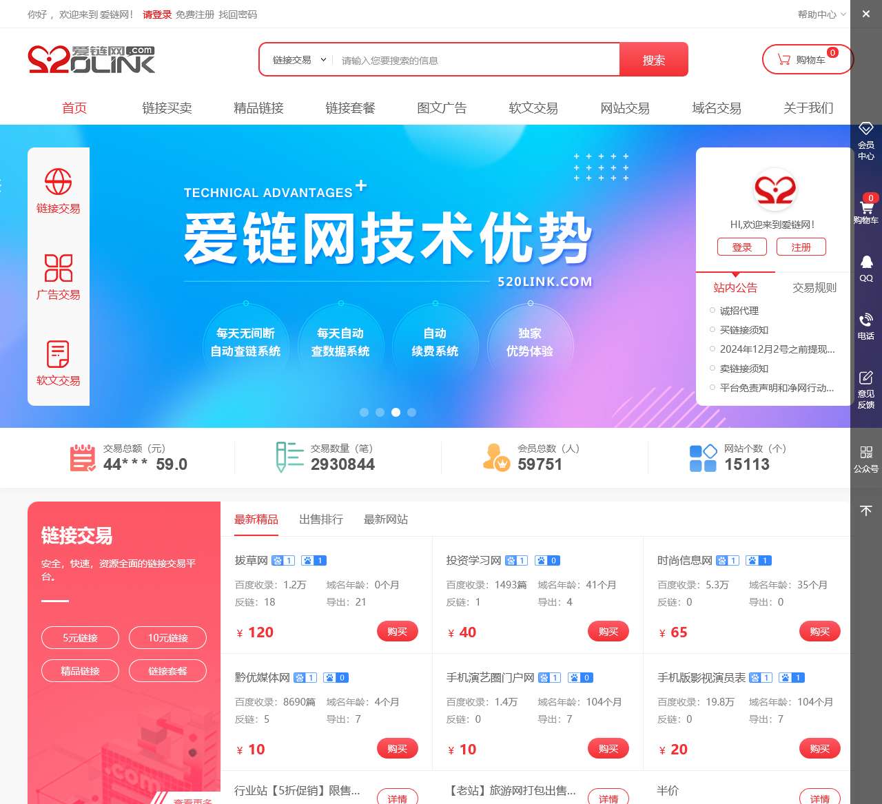 爱链网外链交易平台提供方便、快捷、安全的外链交易服务,友情链接平台,外链买卖,出售链接,求购链接,链接打包出售,买链接,卖链接,外链打包购买,链接交易,我们坚持为广大站长推广网站服务。
