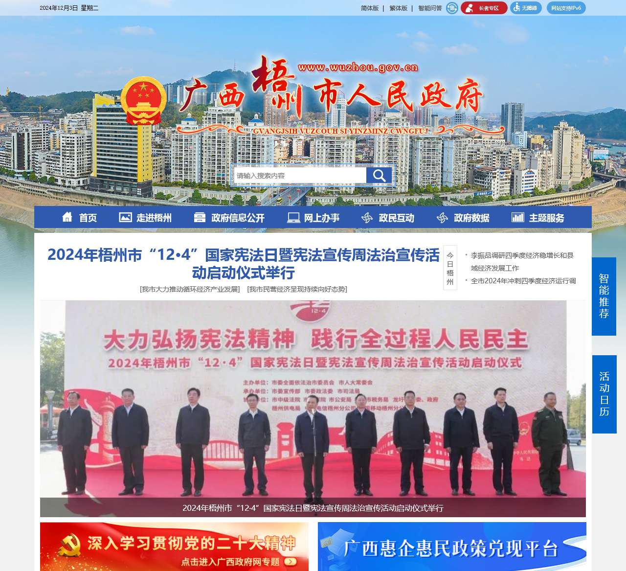 | 活动日历 | 2024年梧州市“12·4”国家宪法日暨宪法宣传周法治宣传活动启动仪式举行 我市大力推动循环经济产业发展 |