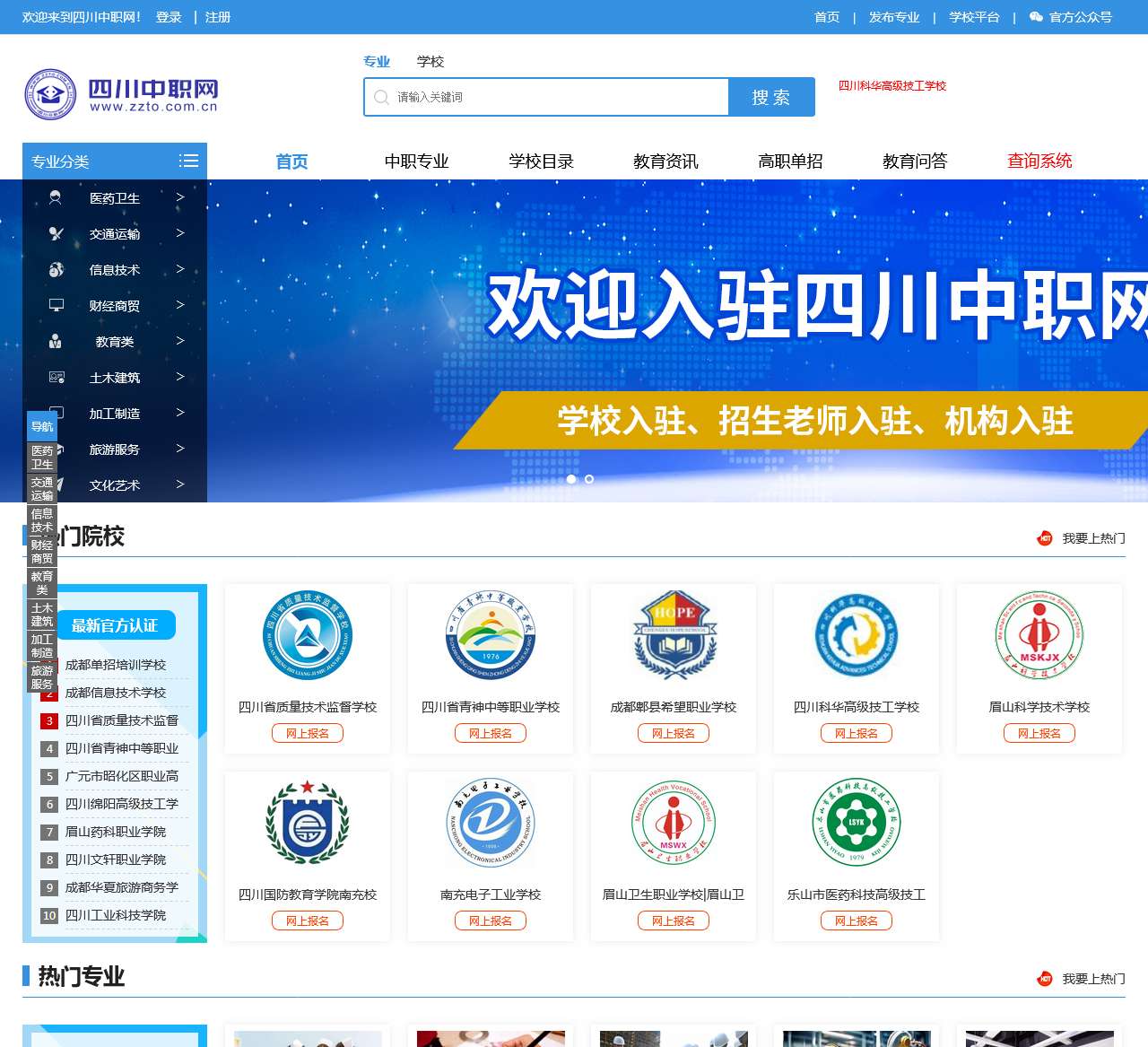 四川中职网是四川中专招生考试信息门户,主要立足于四川,同时辐射周边省份职业院校,服务中专招生,技校招生,提供全面的中专学校和大专院校招生考试信息、就业咨询等服务。
