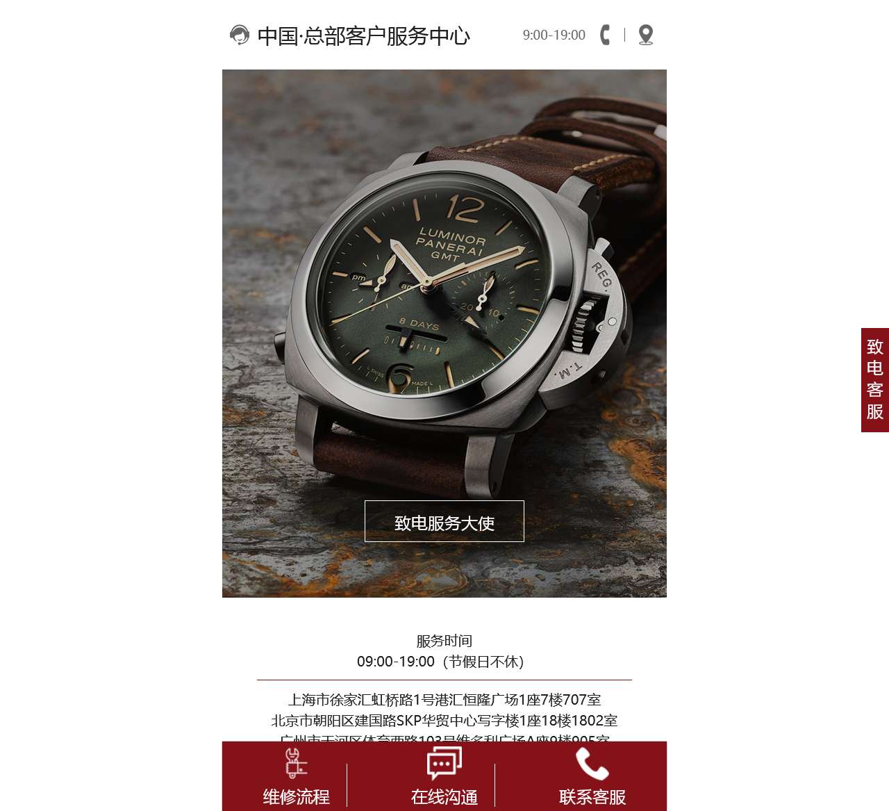 | 9:00-19:00 | 致电服务大使 | 致电客服 |