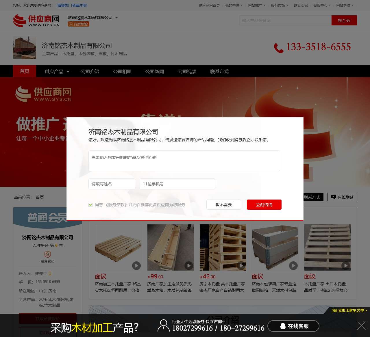 | 产品类别 | 包装(钢边箱, 钢带箱, 卡扣箱, 托盘, 木托盘, 免熏蒸木托盘, 胶合板木托盘, 出口木托盘, 包装箱, 周转箱, 折叠箱, 设备箱, 木框箱, 免熏蒸包装箱, 出口包装箱, 木质包装箱, 木箱, 熏蒸木箱, 床板) |