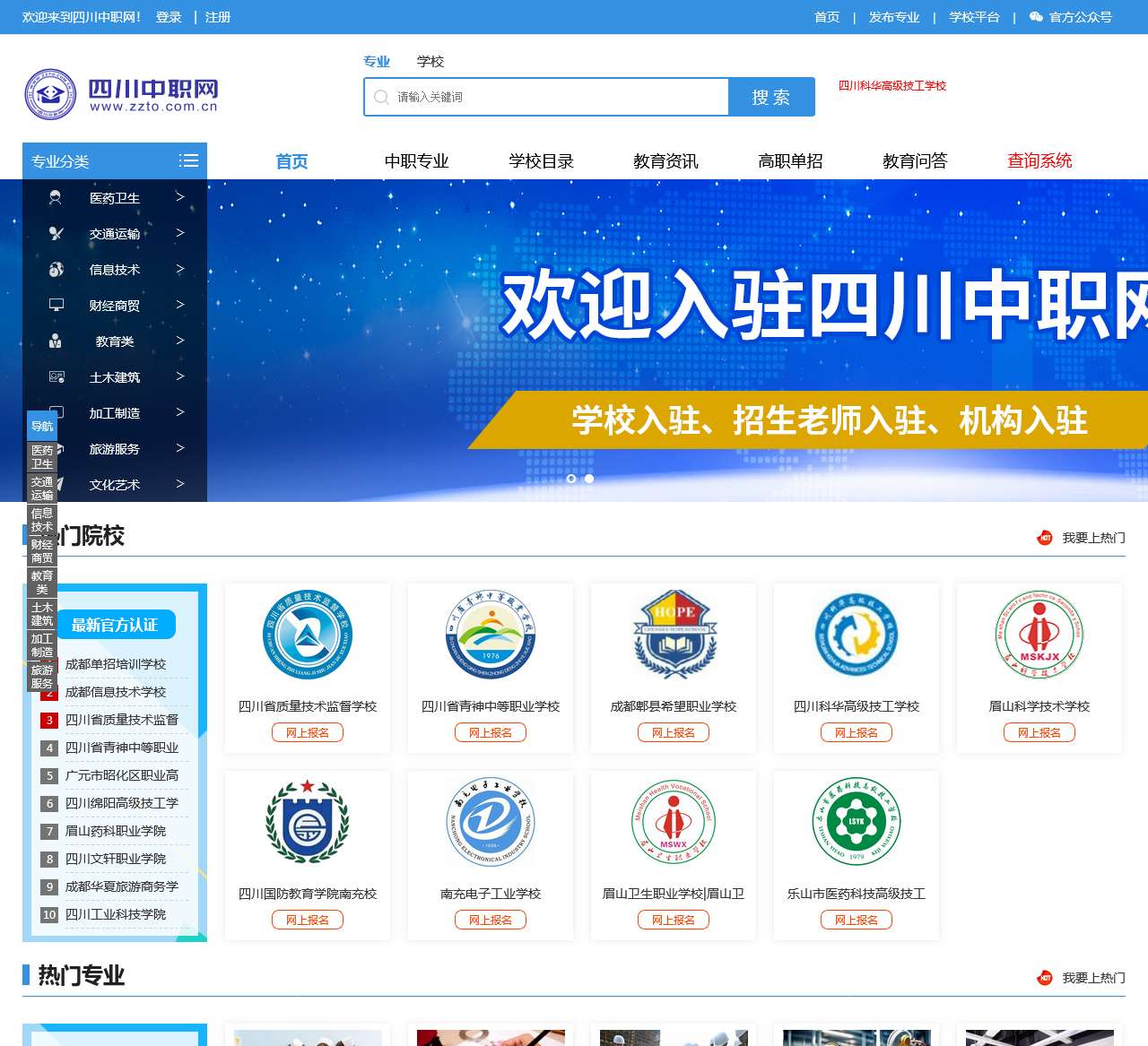 | 学校平台 | 四川科华高级技工学校等各类院校 | 提供热门院校信息,如成都信息技术学校、四川省青神中等职业学校、四川绵阳高级技工学校等。 |