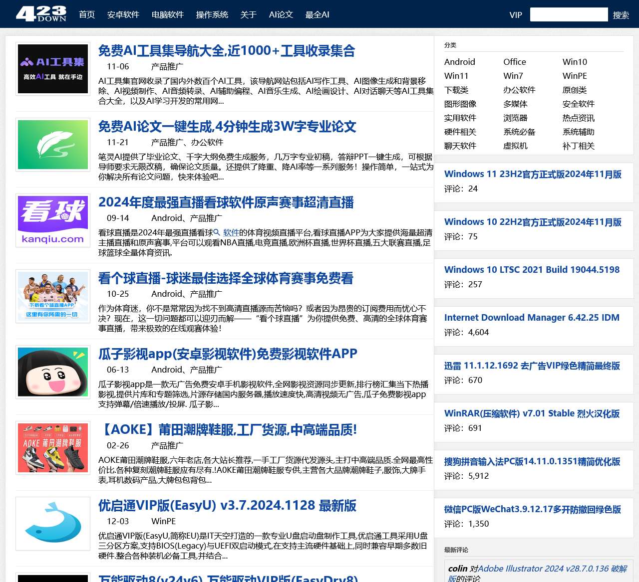 知名软件达人|423DOWN.COM,更新快、专注去广告类软件输出10年、个人IP品牌软件分享站