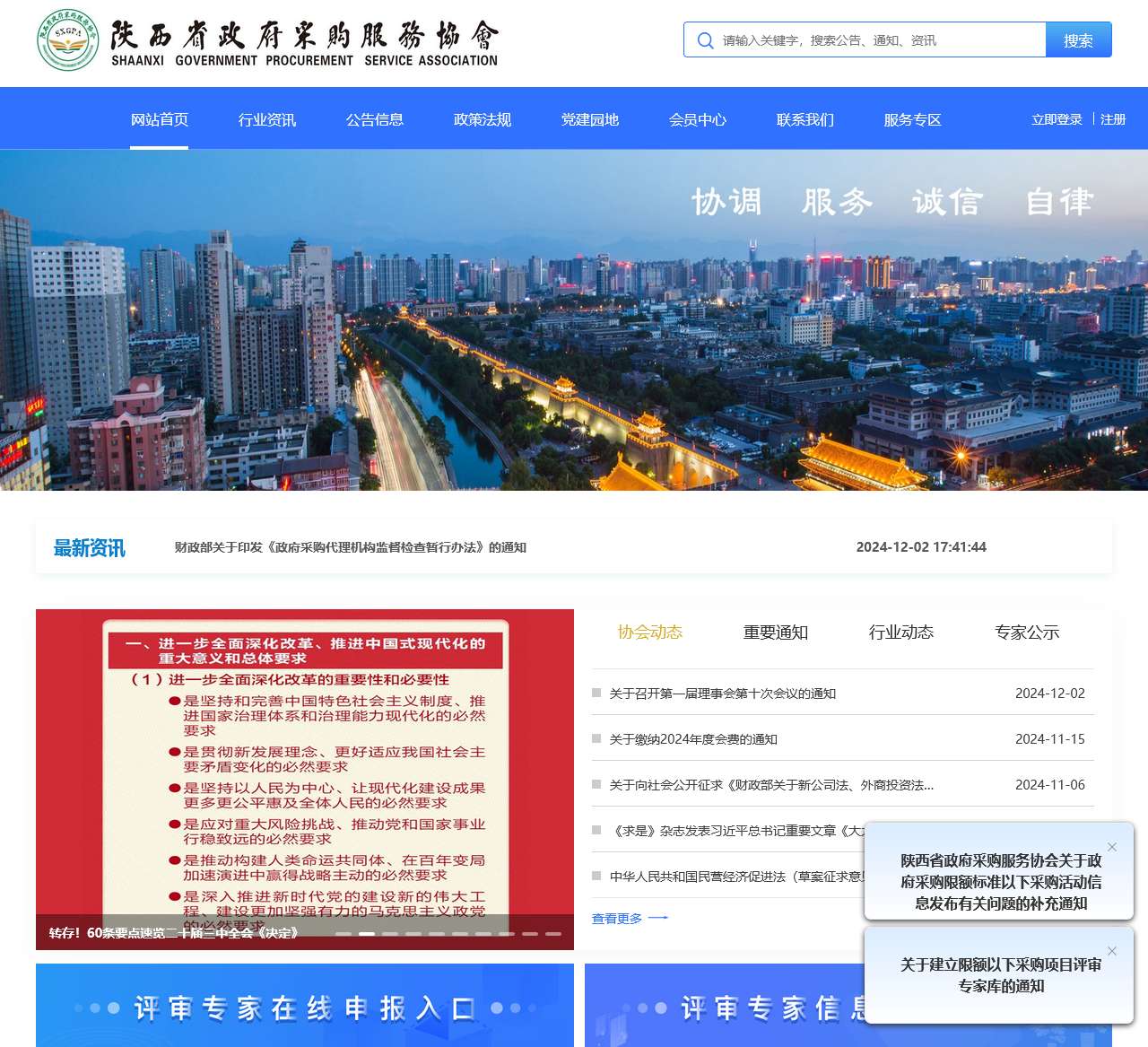 | 公告 | 关于建立限额以下采购项目评审专家库的通知 陕西省政府采购服务协会关于政府采购限额标准以下采购活动信息发布有关问题的补充通知 |