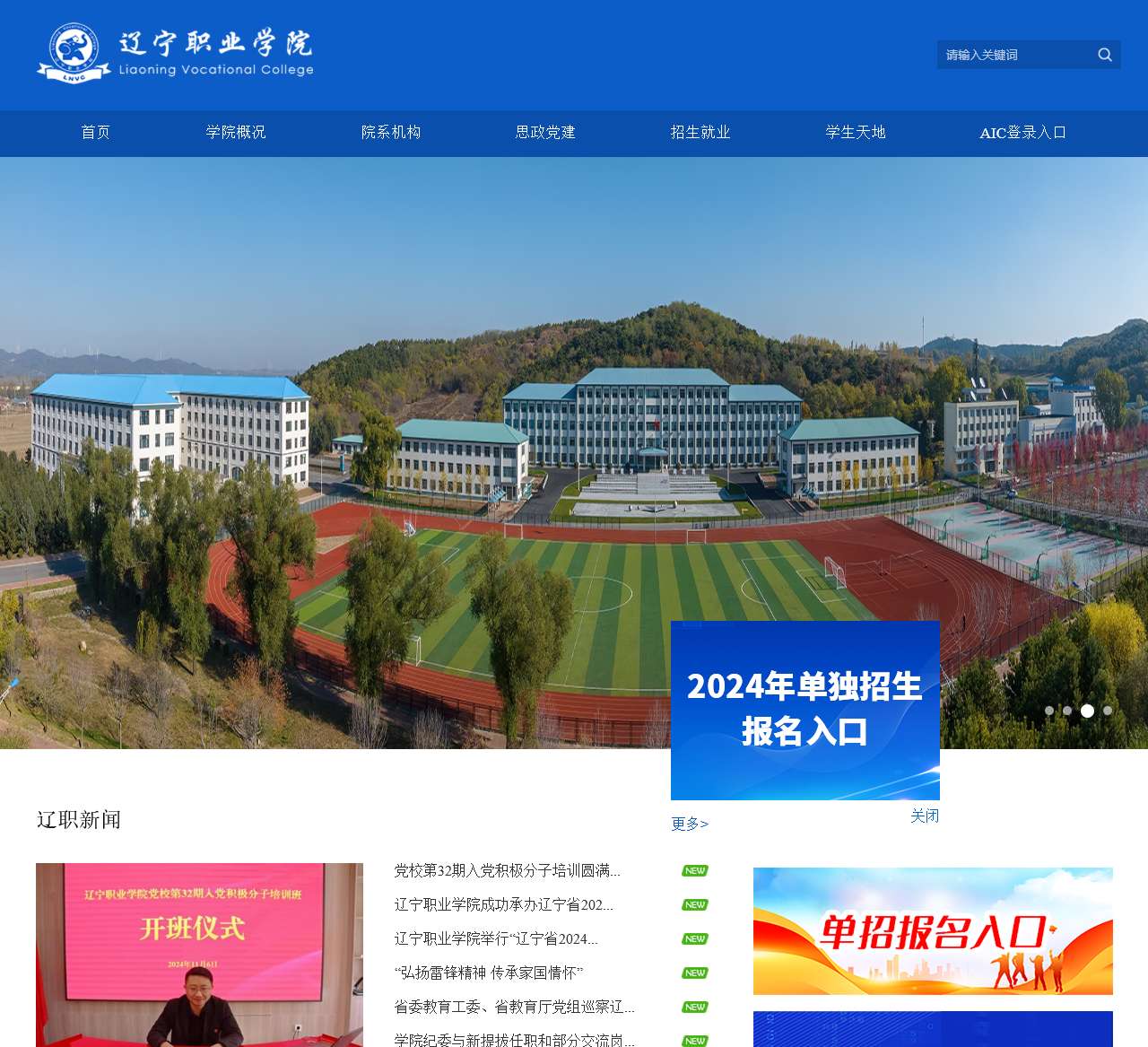 | 党校活动 | 党校第32期入党积极分子培训圆满结束, 辽宁职业学院成功承办辽宁省2024年教育工作会议, “弘扬雷锋精神 传承家国情怀”, 省委教育工委、省教育厅党组巡察辽宁职业学院, 学院纪委与新提拔任职和部分交流岗位人员座谈会, 学院召开2024-2025学年第2次教学工作会议, 辽宁职业学院召开2024级新生军训动员大会 |