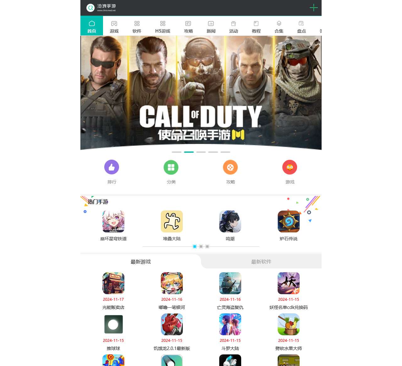 | 热门排行 | 游戏排行、软件排行、专题排行等,协助用户快速找到热门内容。 | – |