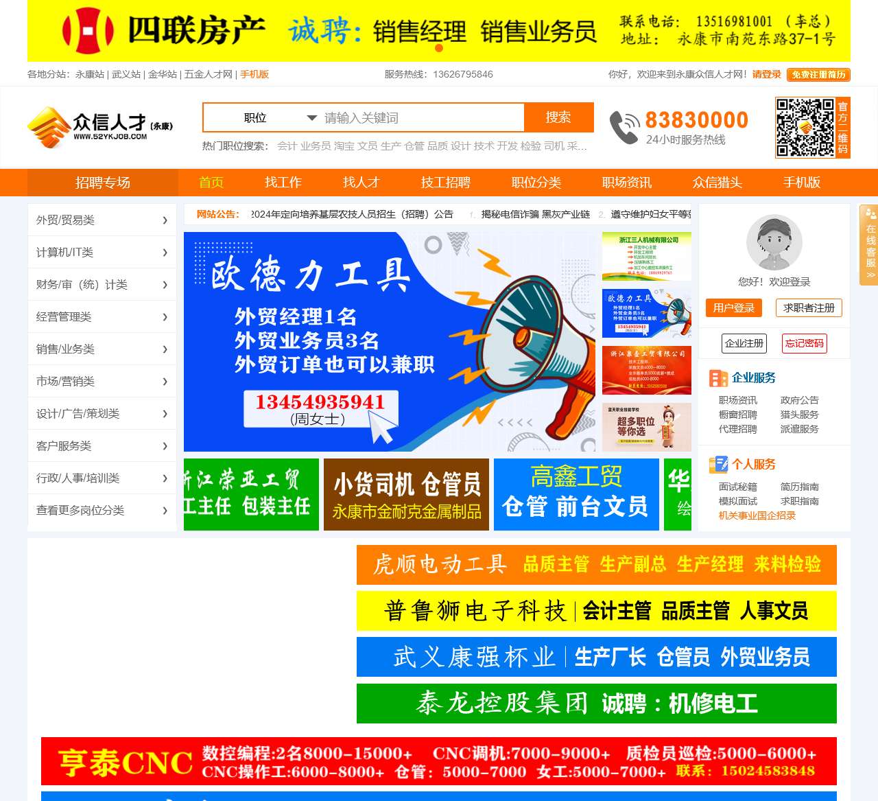 永康人才网招聘求职专业网站–众信人才网(52ykjob.com我爱永康工作),即永康众信人才网是永康市领先的人才网站.招聘求职专业网站,服务电话:0579-83830000