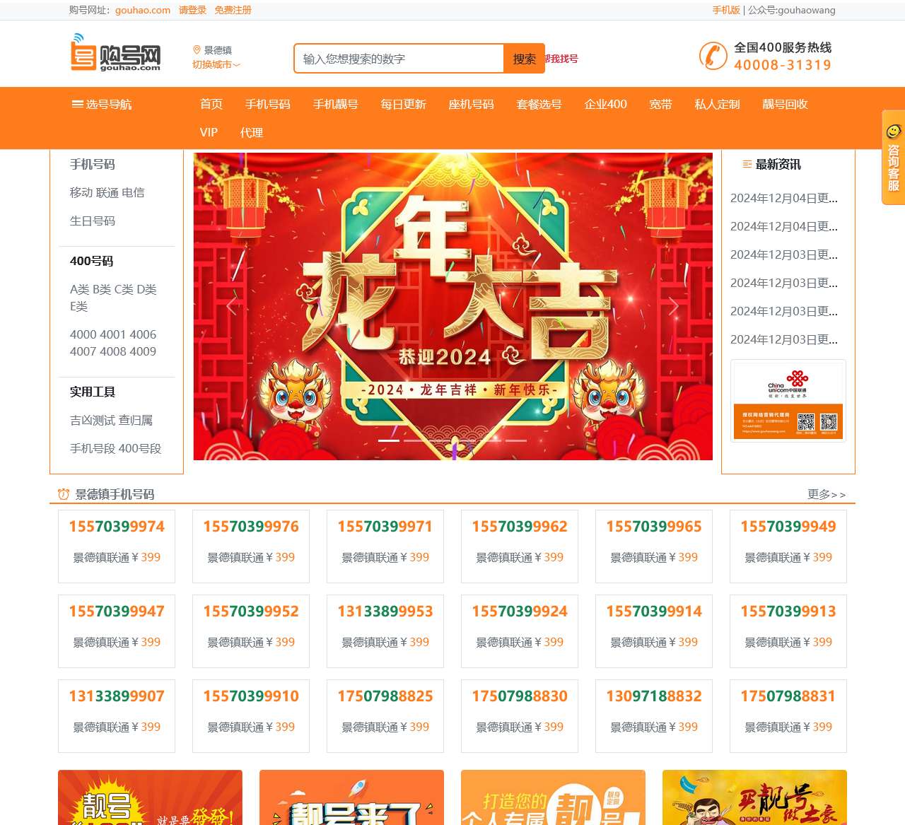 | 服务项目 | 手机号码、手机靓号、每日更新、座机号码、套餐选号、企业400、宽带、私人定制、靓号回收、VIP、代理 |