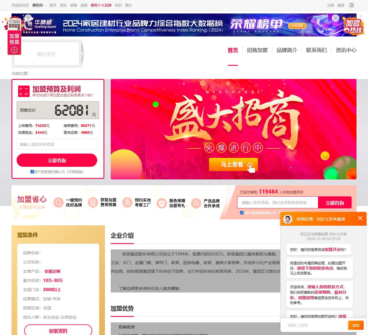 - 加盟预算及利润计算:提供快速计算加盟全屋定制所需费用的工具