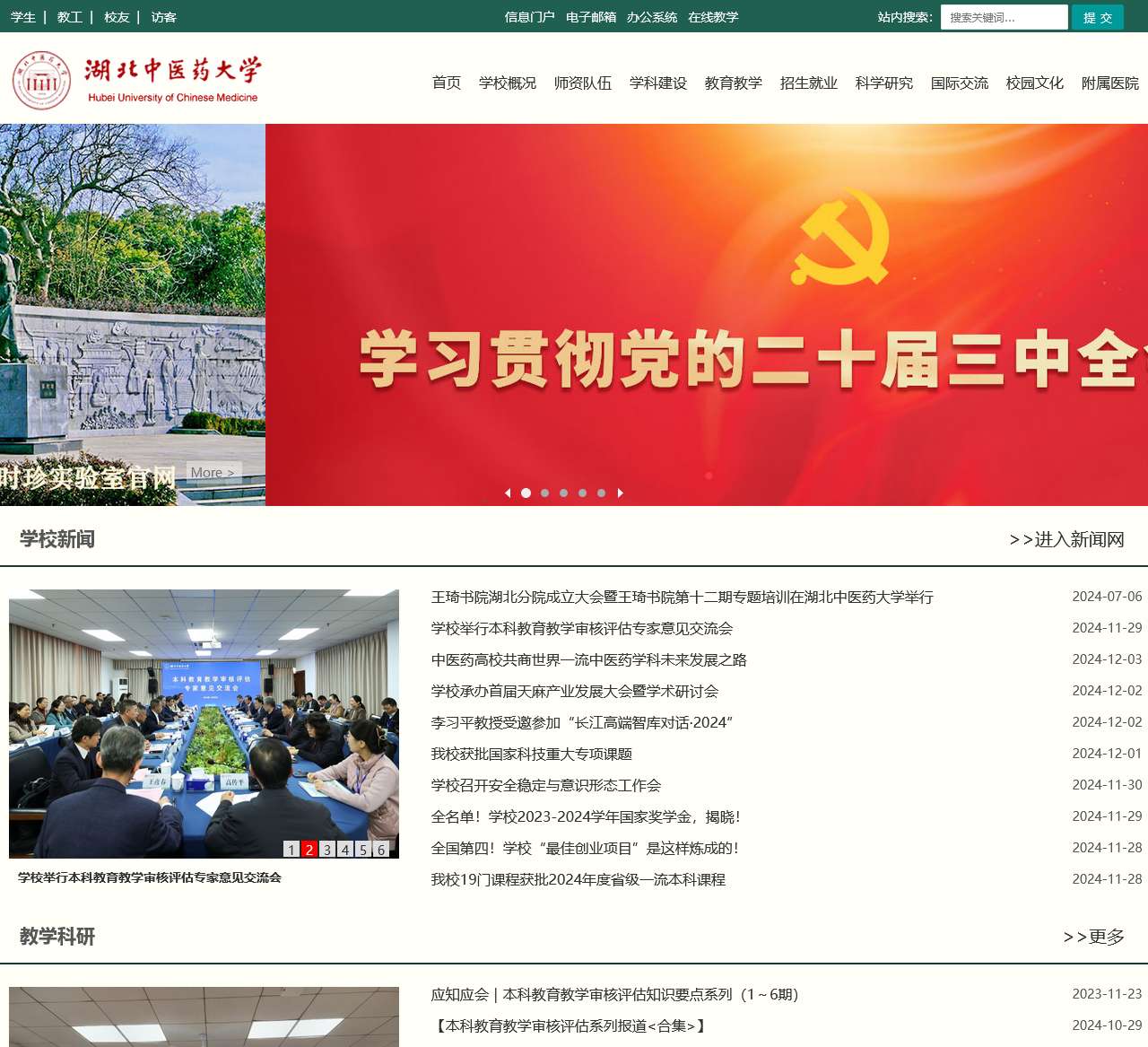 | 教育教学 | 本科生教育、教学日历、在线选课、实习基地、研究生教育、留学生教育、继续教育 |