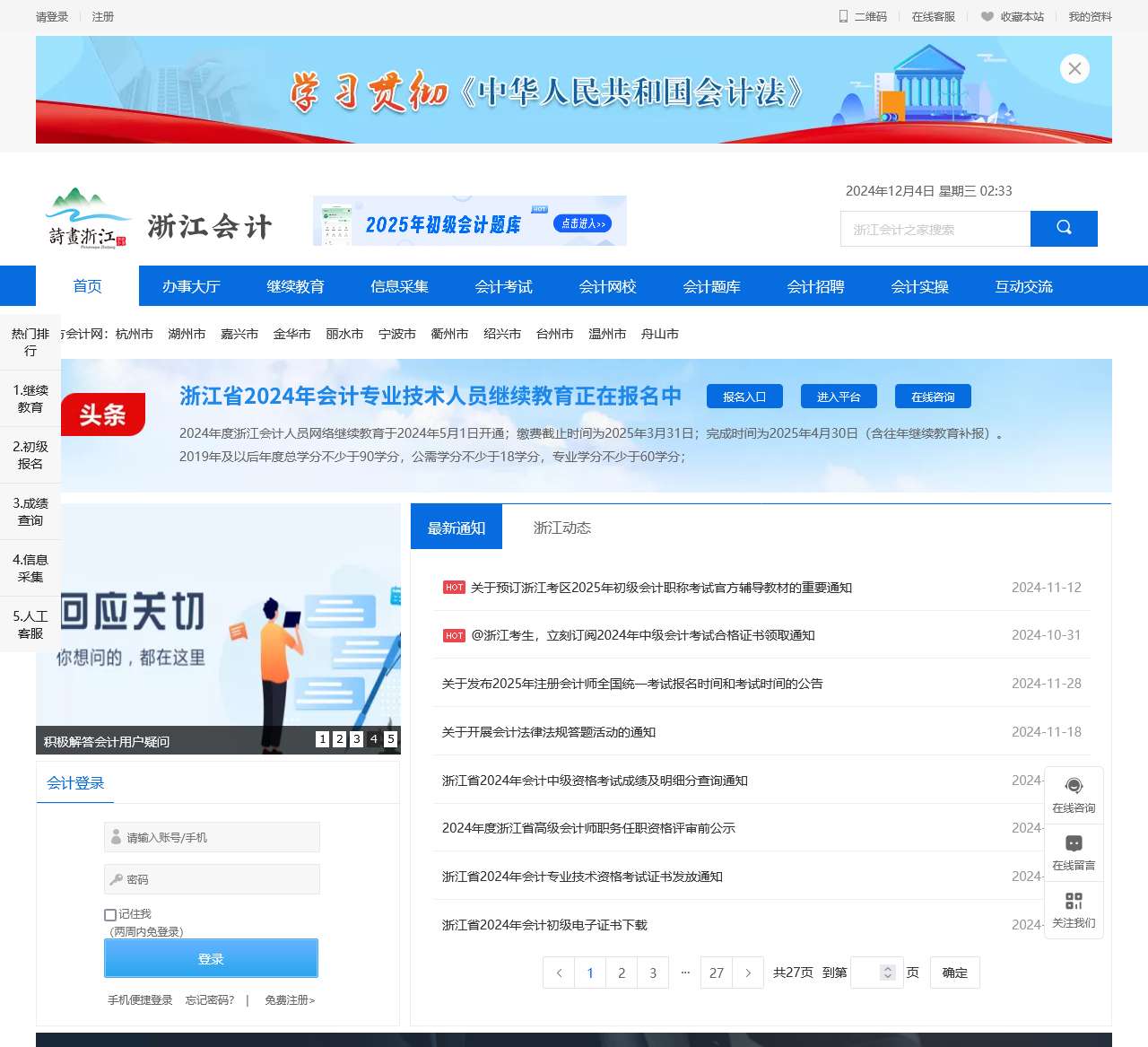 - 浙江省会计考试报名入口(包括初级、中级、高级考试)