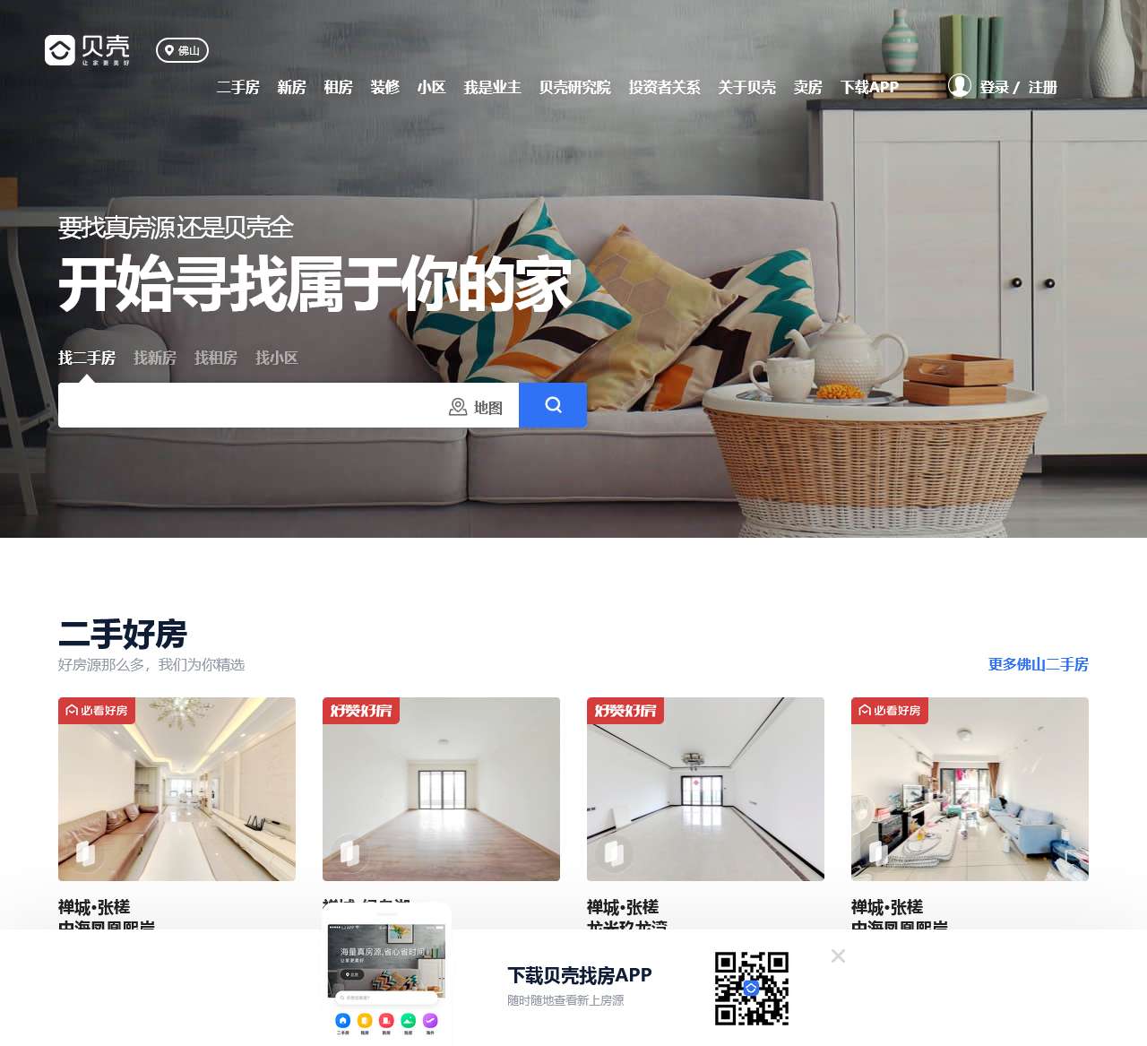 佛山贝壳找房提供真实房源的房产信息平台,为佛山买房、佛山二手房、佛山新房购买以及佛山租房需求的用户提供便捷服务.同时有智能找房、VR看房等先进科技找房功能等你来体验,想在佛山买房、购买佛山二手房、新房、租房,想了解到一手房产资讯、房价行情,就来佛山贝壳找房吧!
