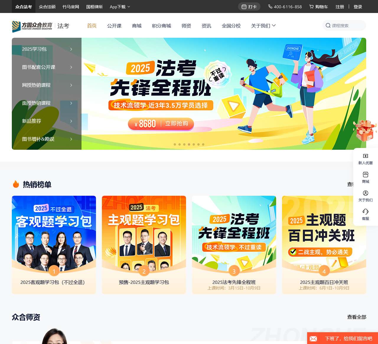 | 全国分校与师资 | – 全国分校信息与众合师资展示,突出课程质量与教育资源。 |