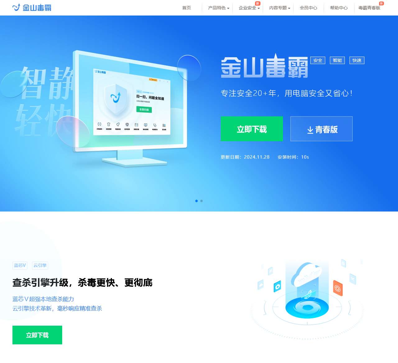 金山毒霸,金山毒霸青春版,金山毒霸11,快速轻巧,安全护航,新功能全面扫描,界面风格清爽升级,持续优化查杀引擎性能,一键加速提高电脑速度,深度清理电脑垃圾,为你的电脑保驾护航。