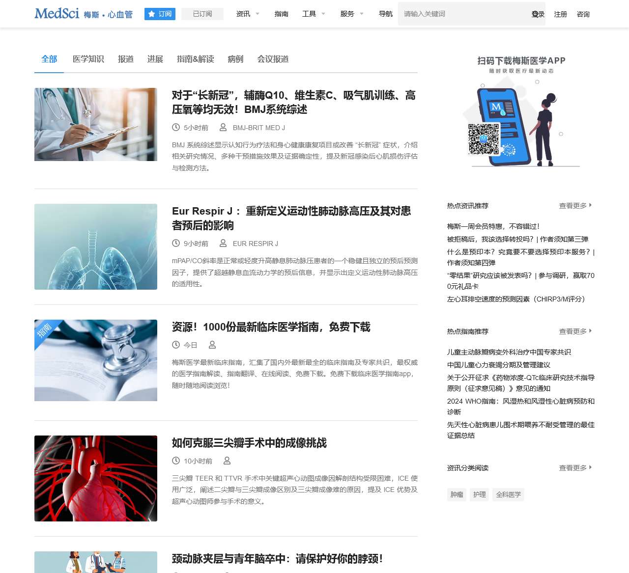 | 健康与科研资讯 | 提供医学报道、疾病进展、指南解读、病例研究、会议报道等内容,涉及领域包括心血管、肿瘤、护理等多个领域。 |