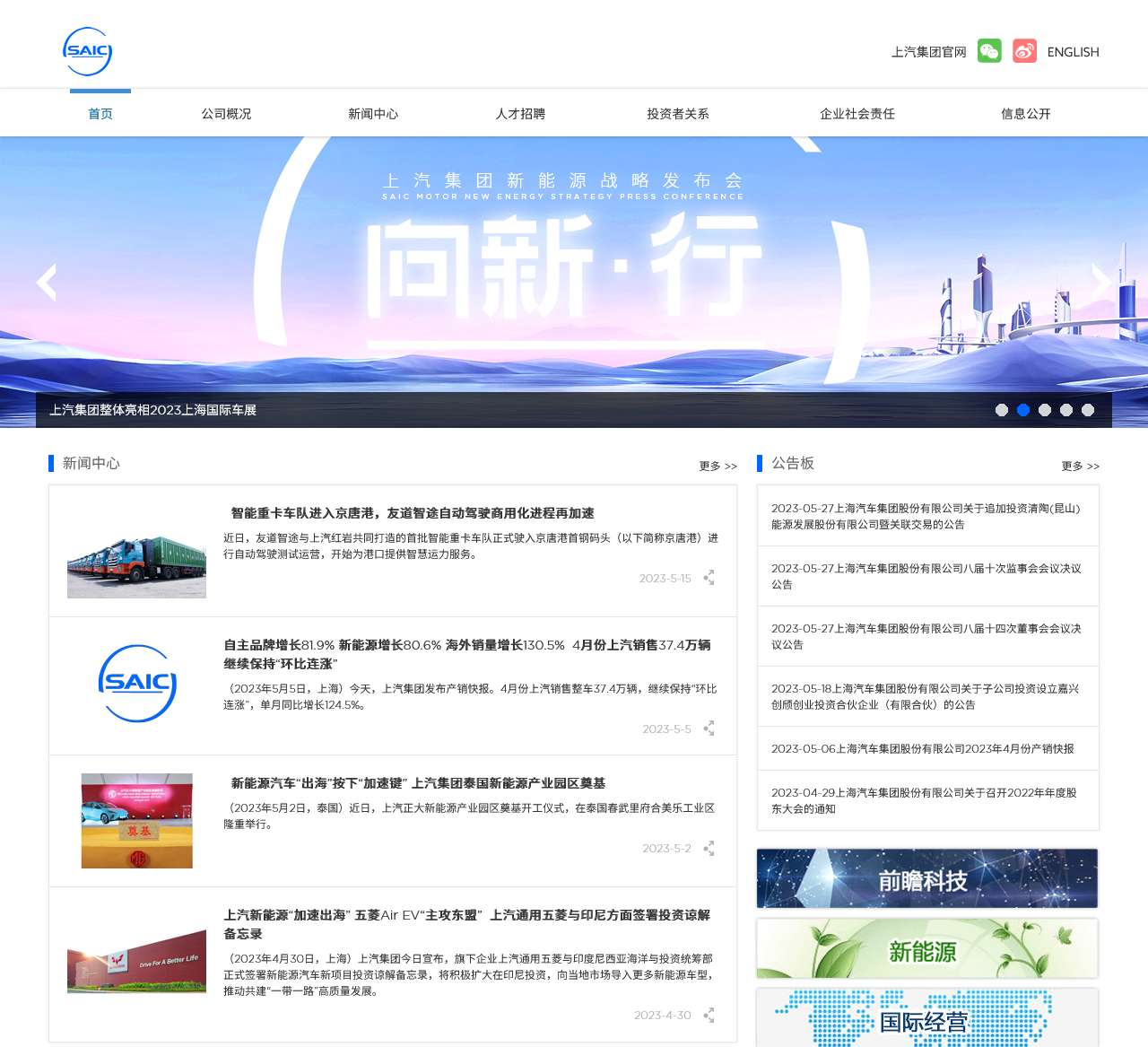 - ENGLISH:提供英文版网站,方便国际用户了解上汽集团。