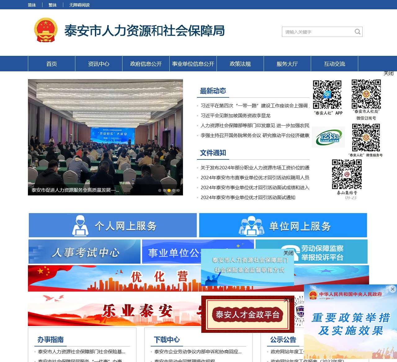 - 泰安市人力资源社会保障局网站提供了政府信息公开、事业单位信息公开和公共就业人才服务中心的相关信息。