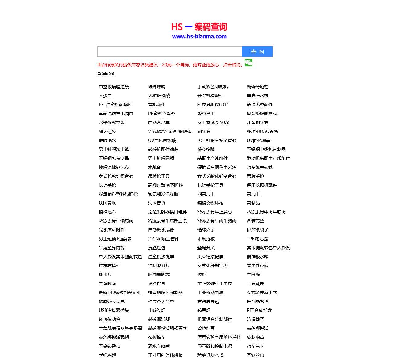 | 专家归类提议 | 由合作报关行提供,20元一个编码,更专业更放心 | 点击咨询 |