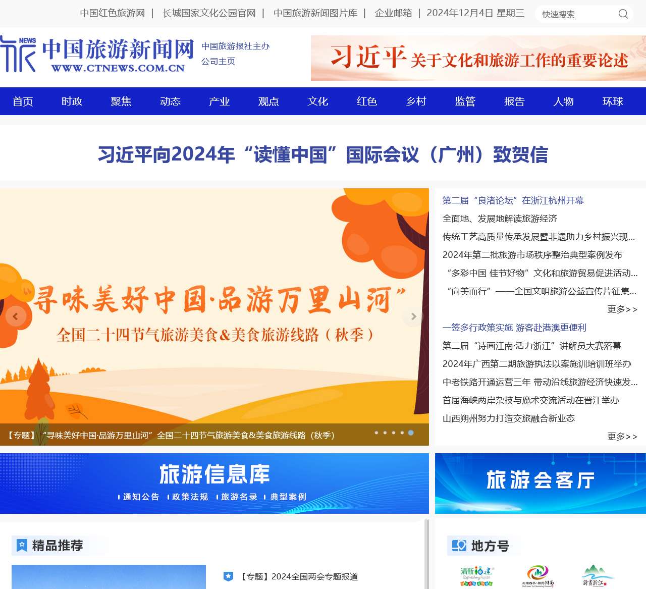 中国旅游新闻网为中国旅游报社官方网站,对用户提供的主要服务包括:发布文化和旅游部相关政策法规、跟踪报道全国各地旅游重点事件、大型旅游会议活动图文专题、《中国旅游报》数字版在线阅读等,是利用主流新媒体技术及时准确发布旅游新闻信息的资讯类网站。