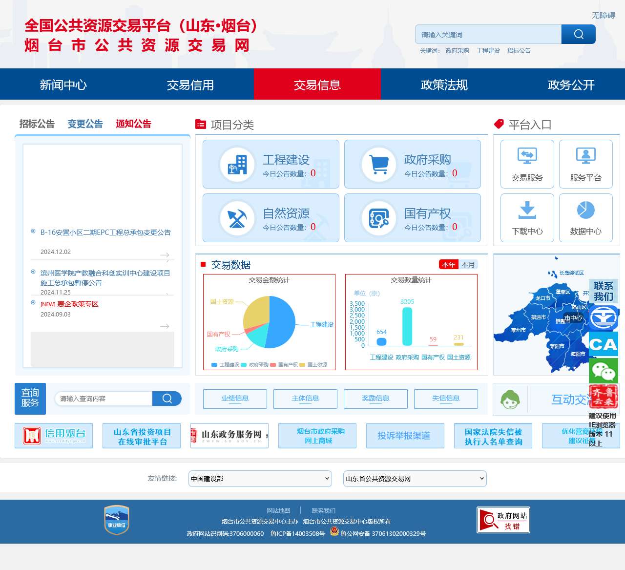 | 新闻动态 | 1. 烟台市公共资源交易电子服务平台全新升级上线运行 2. 山东省公共资源交易中心向牟平分中心发来感谢信 3. 烟台市公共资源交易中心莱阳分中心打造“智慧交易+向阳而行”特色品牌 |