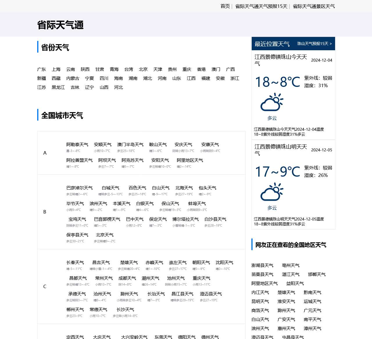 省际天气通提供全国各省最新的天气预报信息,包括温度、湿度、风力等详细数据。让您随时掌握各地天气变化,为出行和生活做好充分准备。