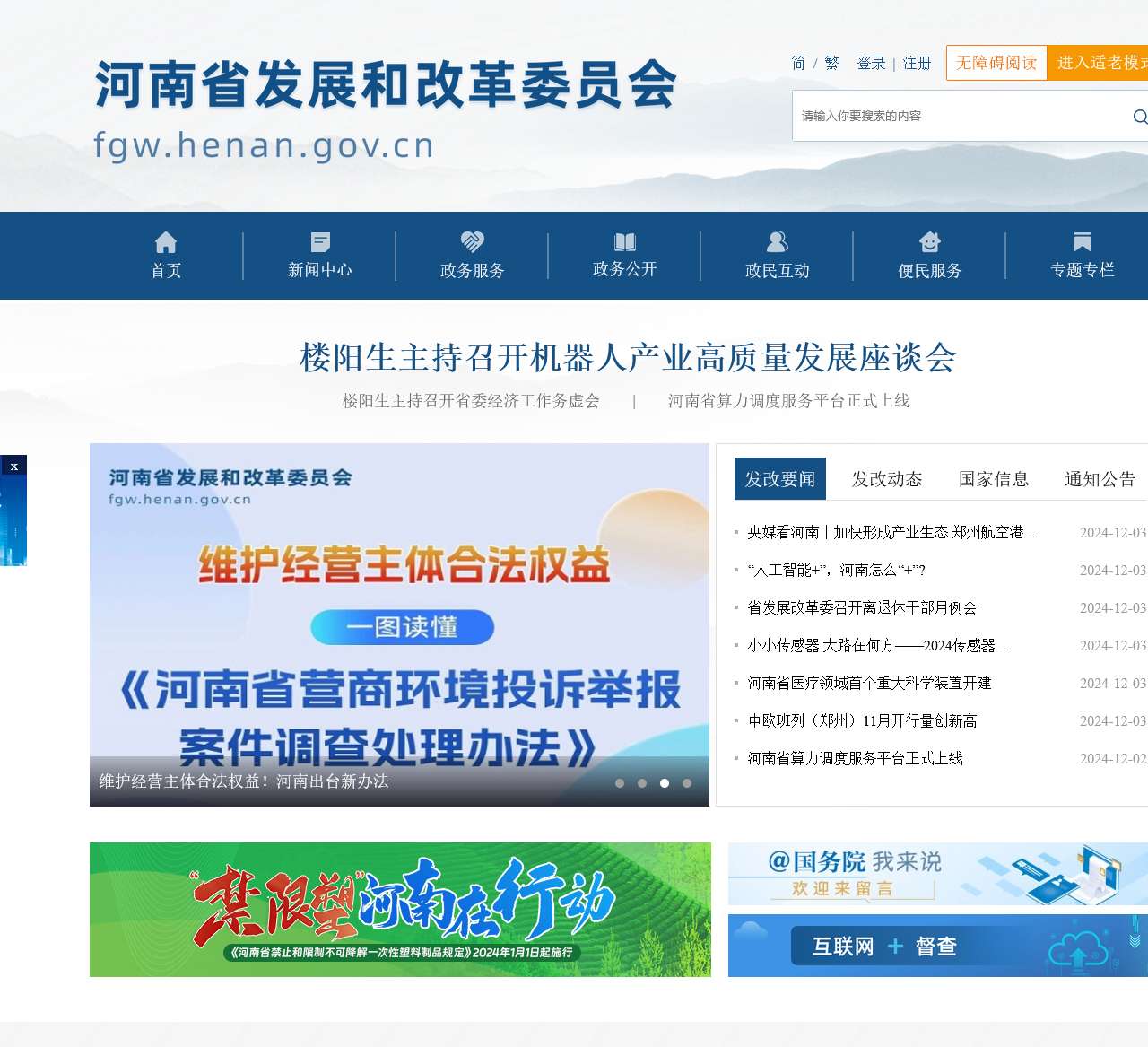 | 新闻中心 | – 楼阳生主持召开机器人产业高质量发展座谈会 – 河南省算力调度服务平台正式上线 – 2024传感器产业创新发展峰会 – 中欧班列(郑州)11月开行量创新高 |