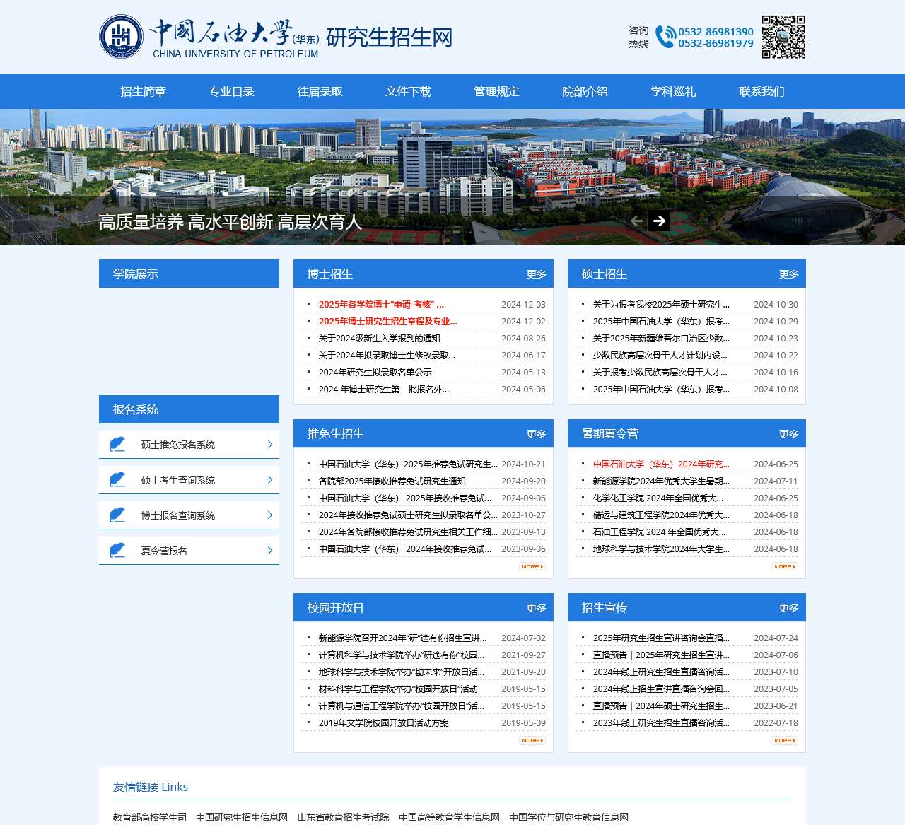 | 报名系统 | 提供硕士推免报名系统、硕士考生查询系统、博士报名查询系统等功能。 |