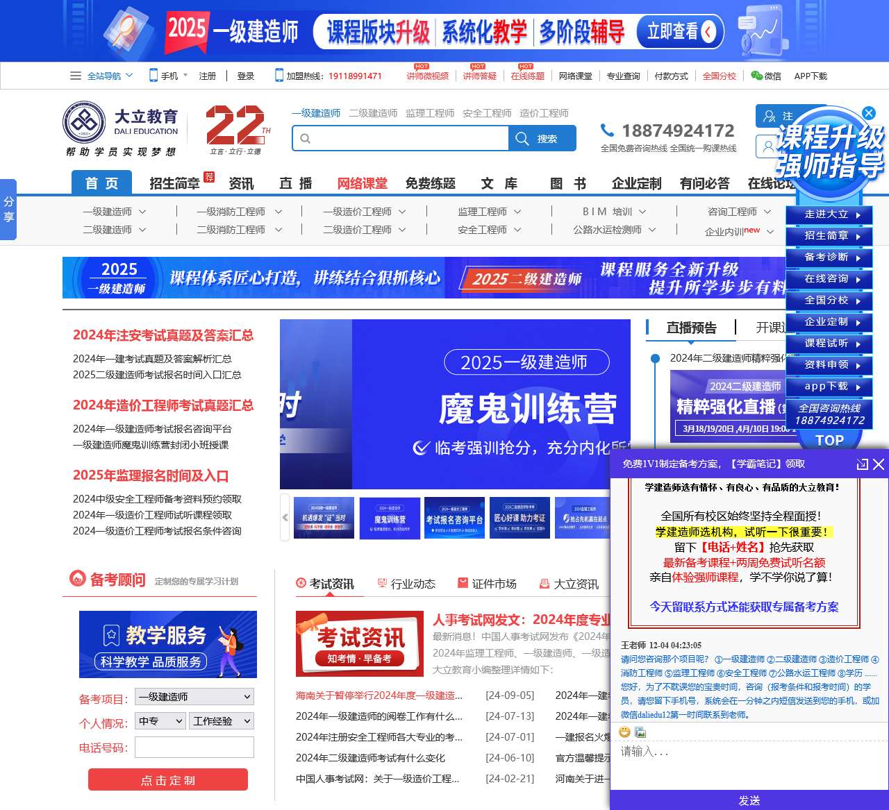 大立教育中国建工培训连锁品牌,专业提供一级建造师,二级建造师,消防工程师,造价工程师,安全工程师,咨询工程师,监理工程师,建筑八大员,BIM等建筑行业资格证书考试的考前培训