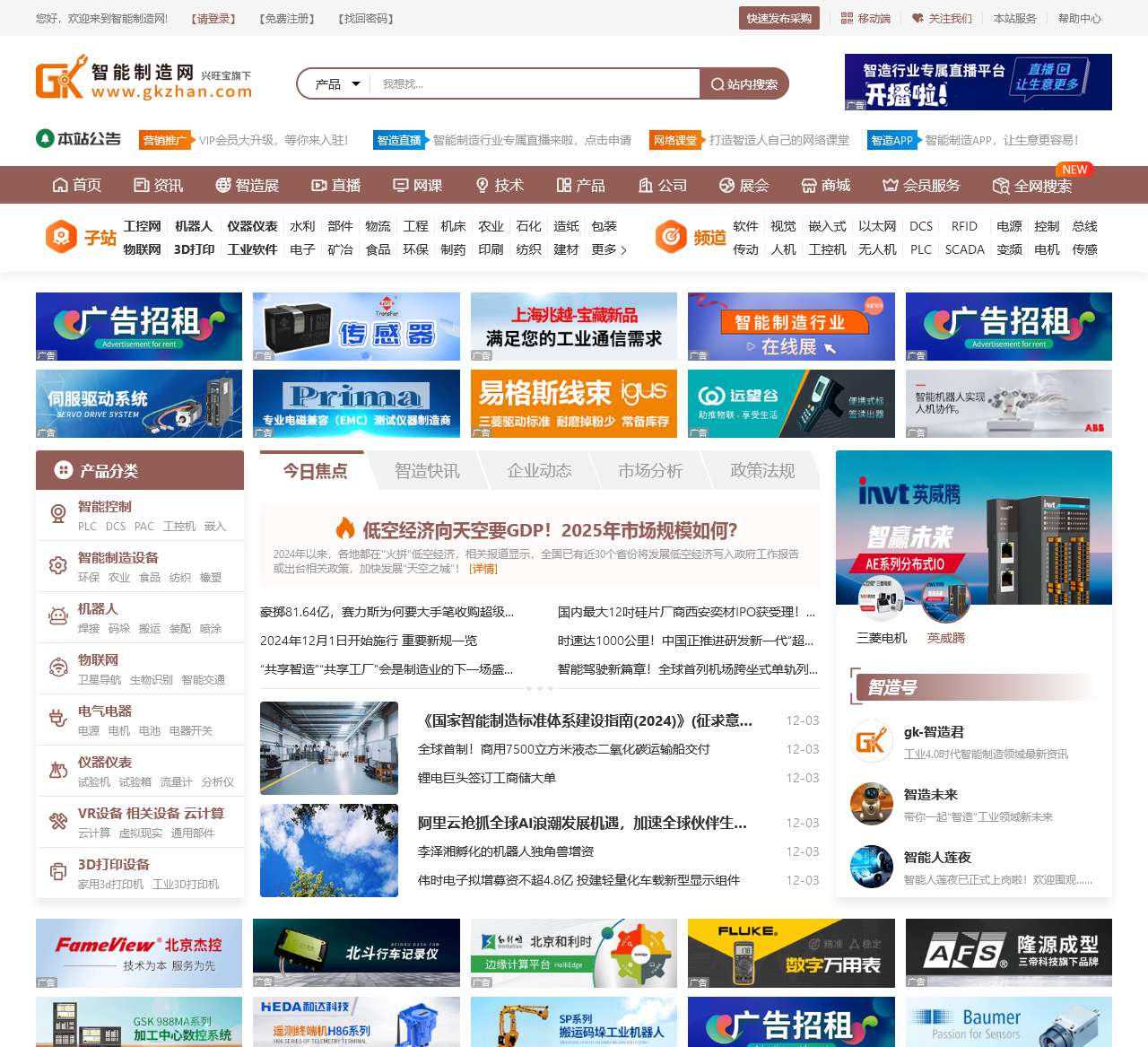 - 产品分类:从PLC到农业机器人等多种工业设备产品展示。
