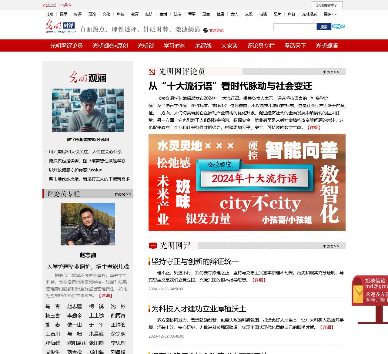 | 时评频道 | 光明网评论员、光明观察•原创、光明谈、学习时刻、大众谈、地评线、大家谈、评论员专栏、漫话天下、光明观澜 |