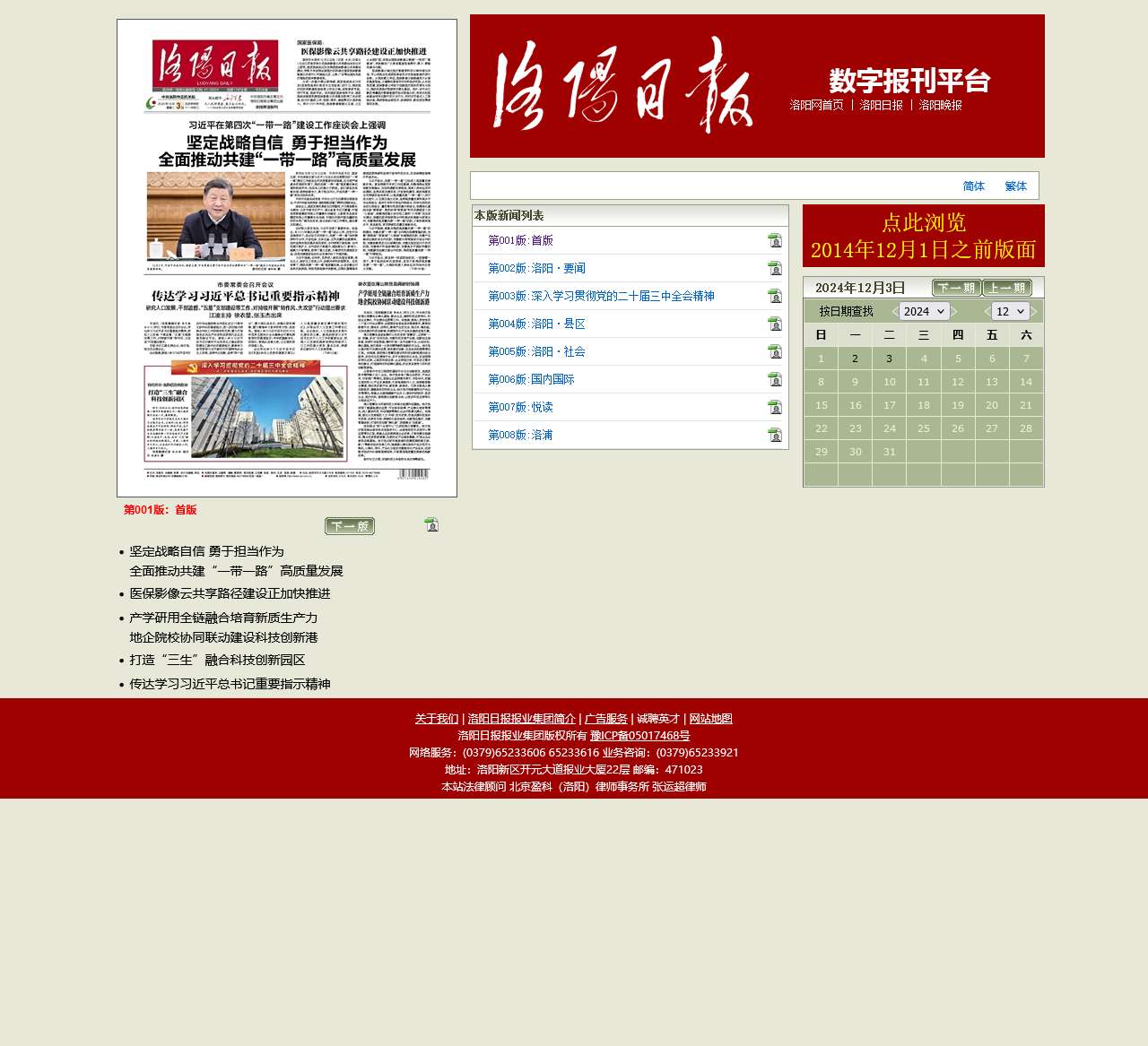 | 期刊版面 | 包括第001版(首版)、第002版(洛阳·要闻)、第003版(深入学习贯彻党的二十届三中全会精神)等,详细介绍各版内容和要闻。 |
