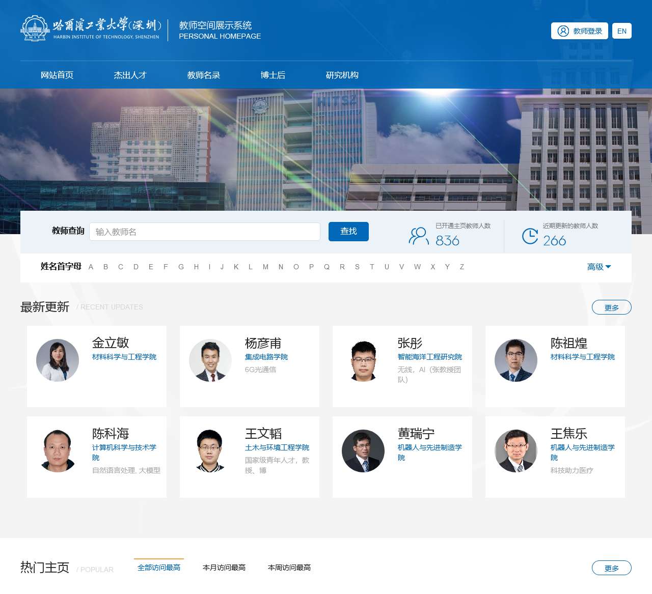 | 高级 A-Z | 按字母顺序展示所有科研人员的信息。 |