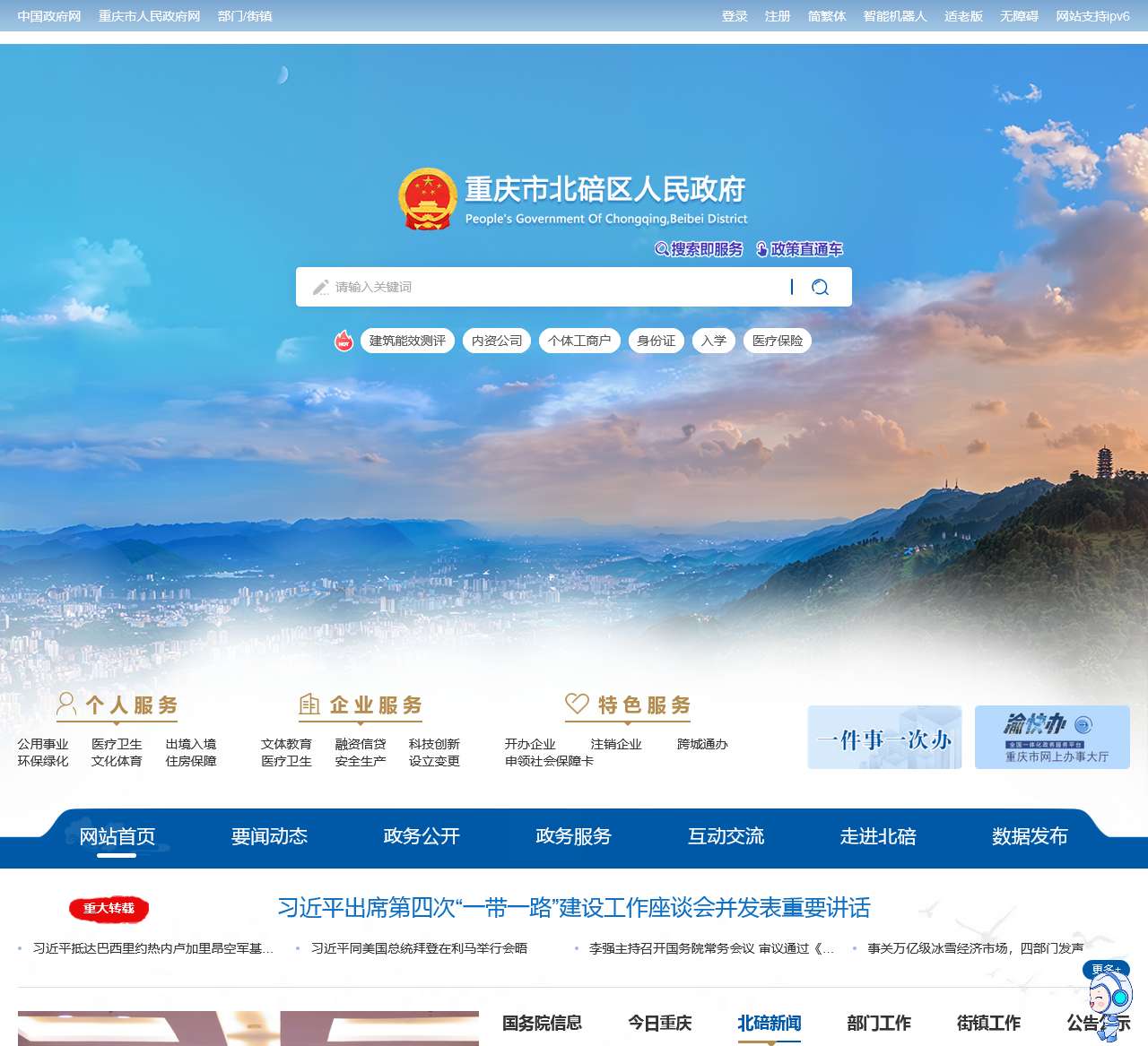 | 政务栏目 | 网站首页、要闻动态、政务公开、政务服务、互动交流、走进北碚、数据发布 |