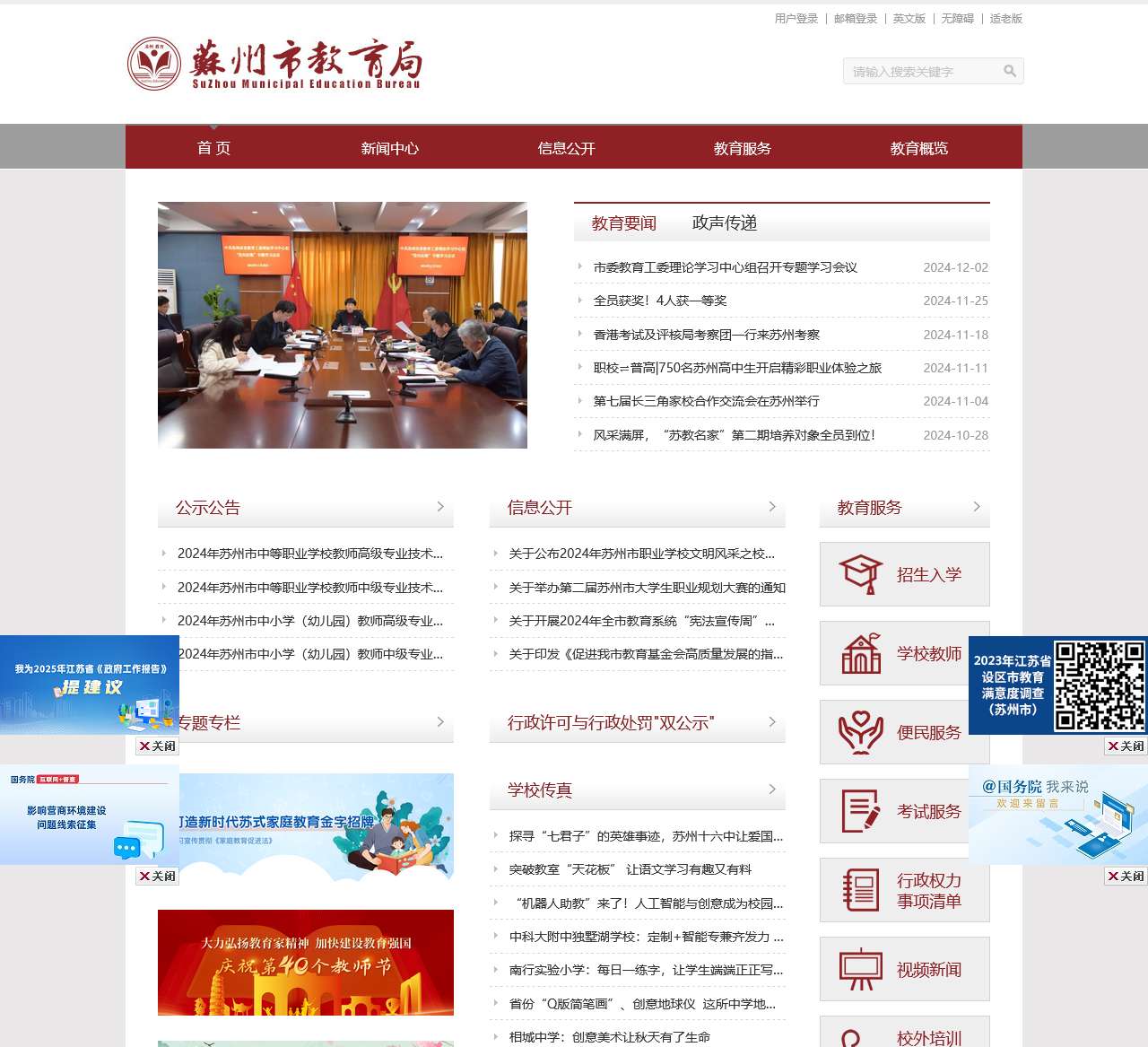 | 信息公开 | – 关于公布2024年苏州市职业学校文明风采之校园心理微电影评选活动获奖名单的通知 – 关于举办第二届苏州市大学生职业规划大赛的通知 – 关于开展2024年全市教育系统“宪法宣传周”系列活动的通知 – 关于印发《促进我市教育基金会高质量发展的指导意见(试行)》的通知 |