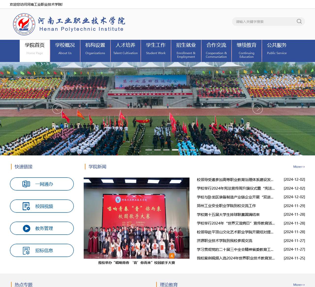 | 公共服务 | 教务管理系统、学生管理系统、顶岗实习系统、数字化学习中心、一网通办、校园视频、教务管理、招标信息 |