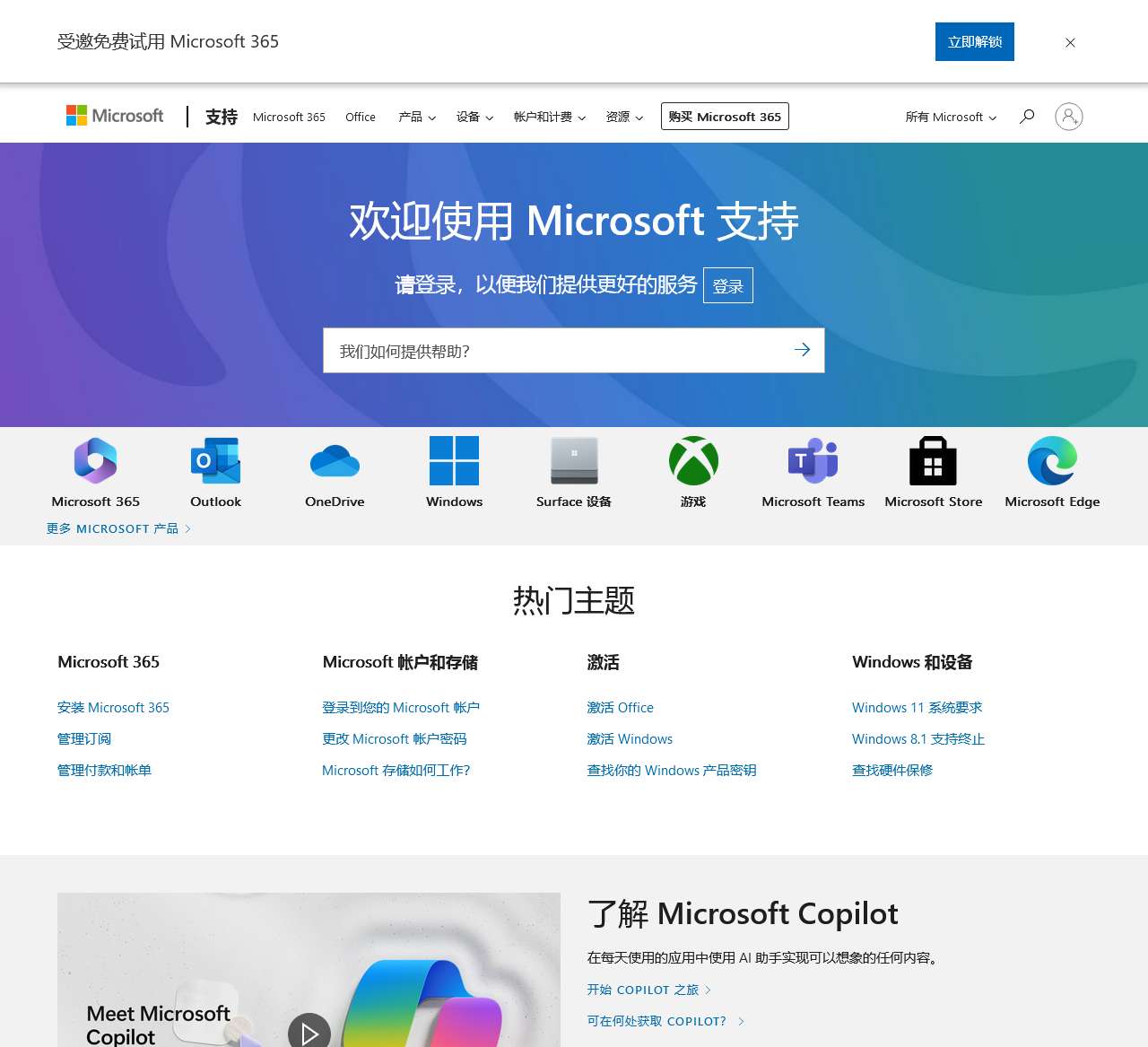 Microsoft 支持可帮助你处理 Microsoft 产品的问题。 查找有关 Microsoft Copilot、Microsoft 365、Windows、Surface 等操作方法的文章、视频和培训。